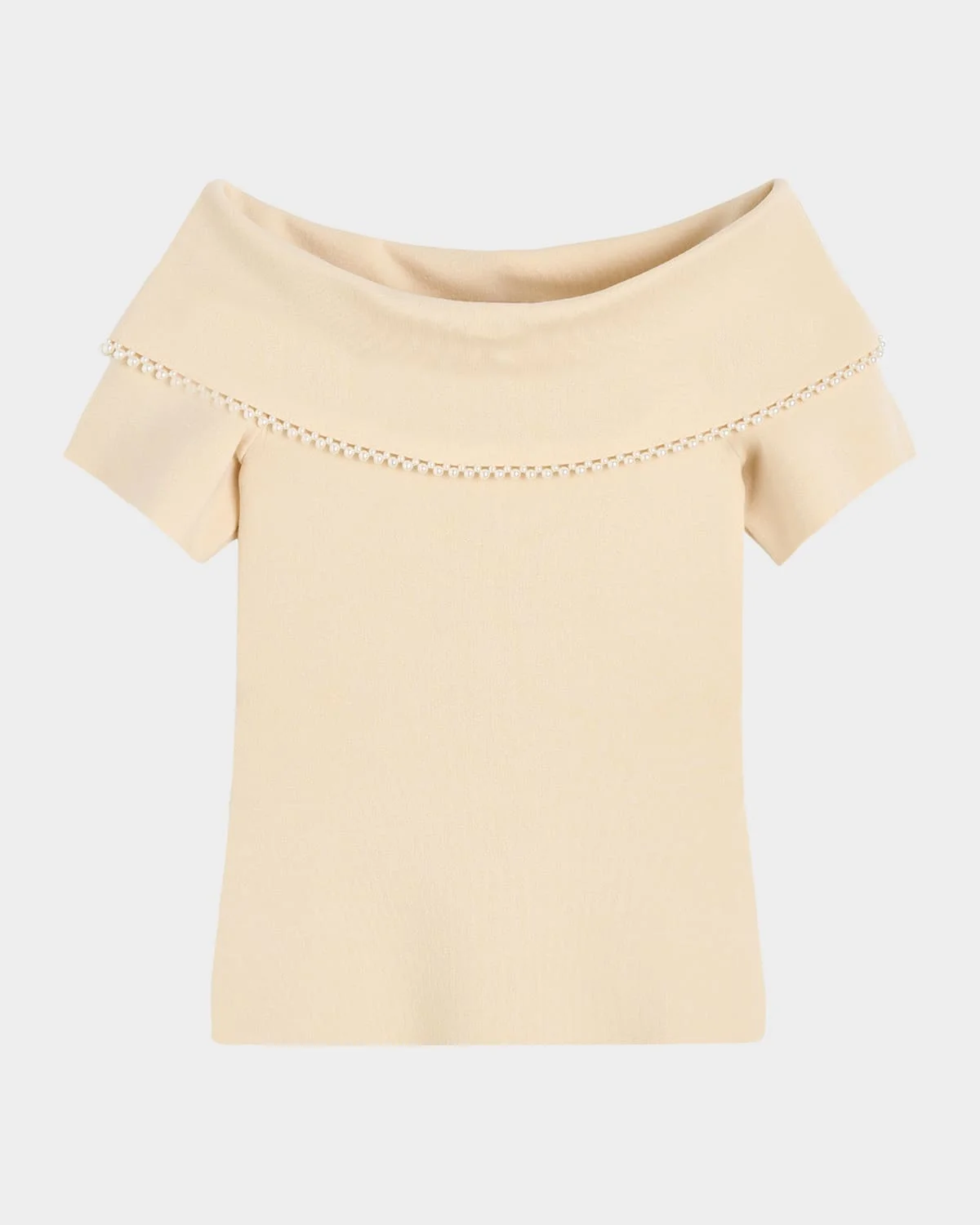 The "Hetha" top from By Malene Birger is cut from stretch fabric, adorned with delicate pearlescent bead trim along the foldover feature Offtheshoulder foldover neckline Short sleeves Slim fit Pullover style TENCEL™ lyocell/elastane Dry clean Imported
