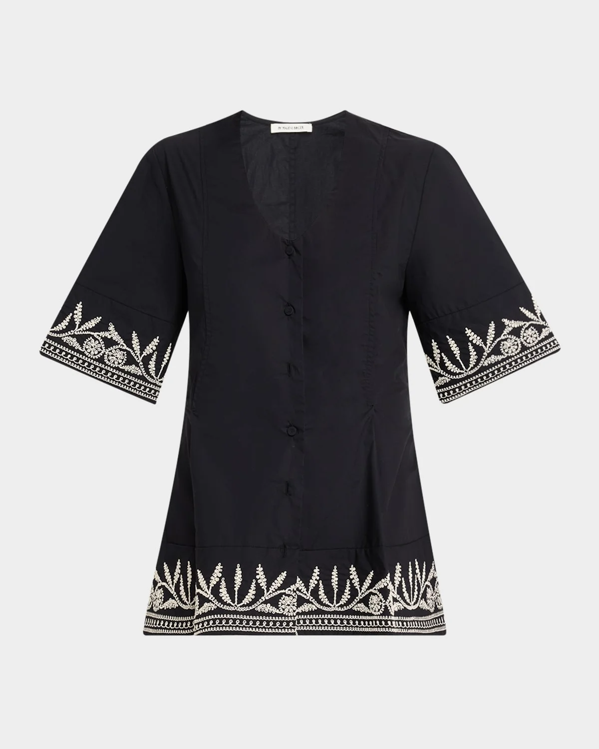 - Made of organic cotton, the "Merlina" top from By Malene Birger is brightened with garden vine embroidery - Scoop neckline; button front - Wide elbow sleeves - Flared hem - Slim fit - Organic cotton - Dry clean - Imported