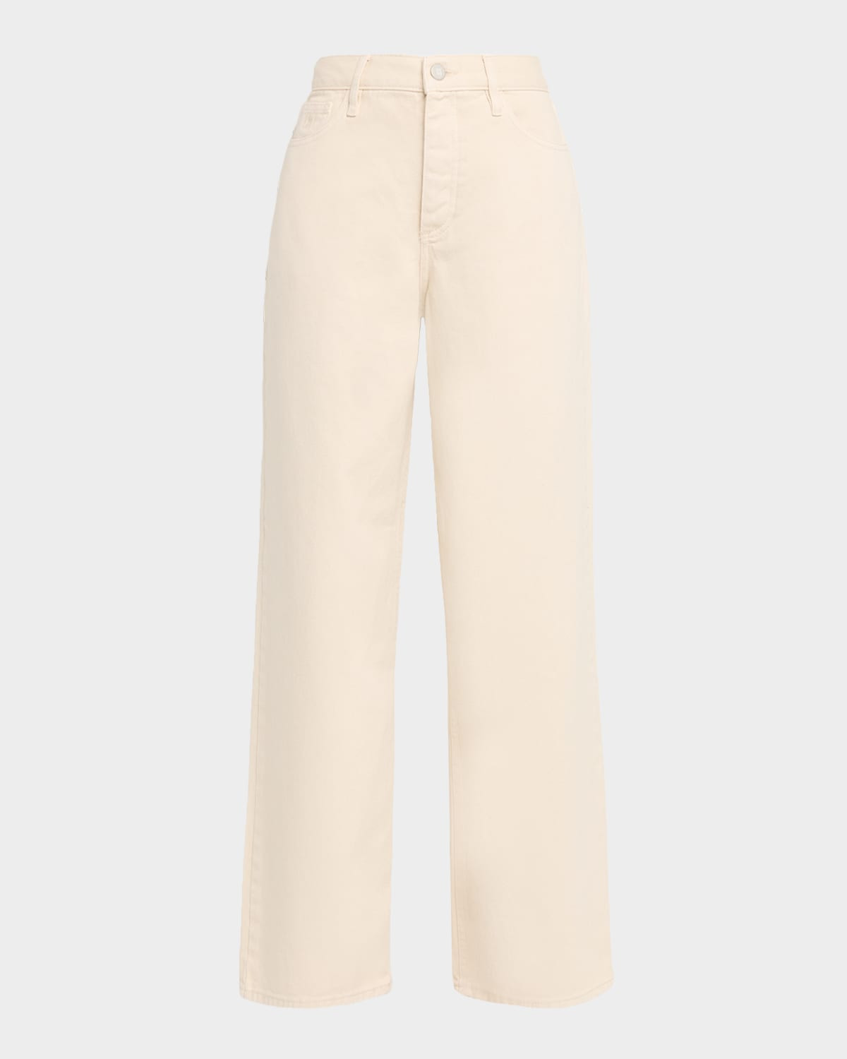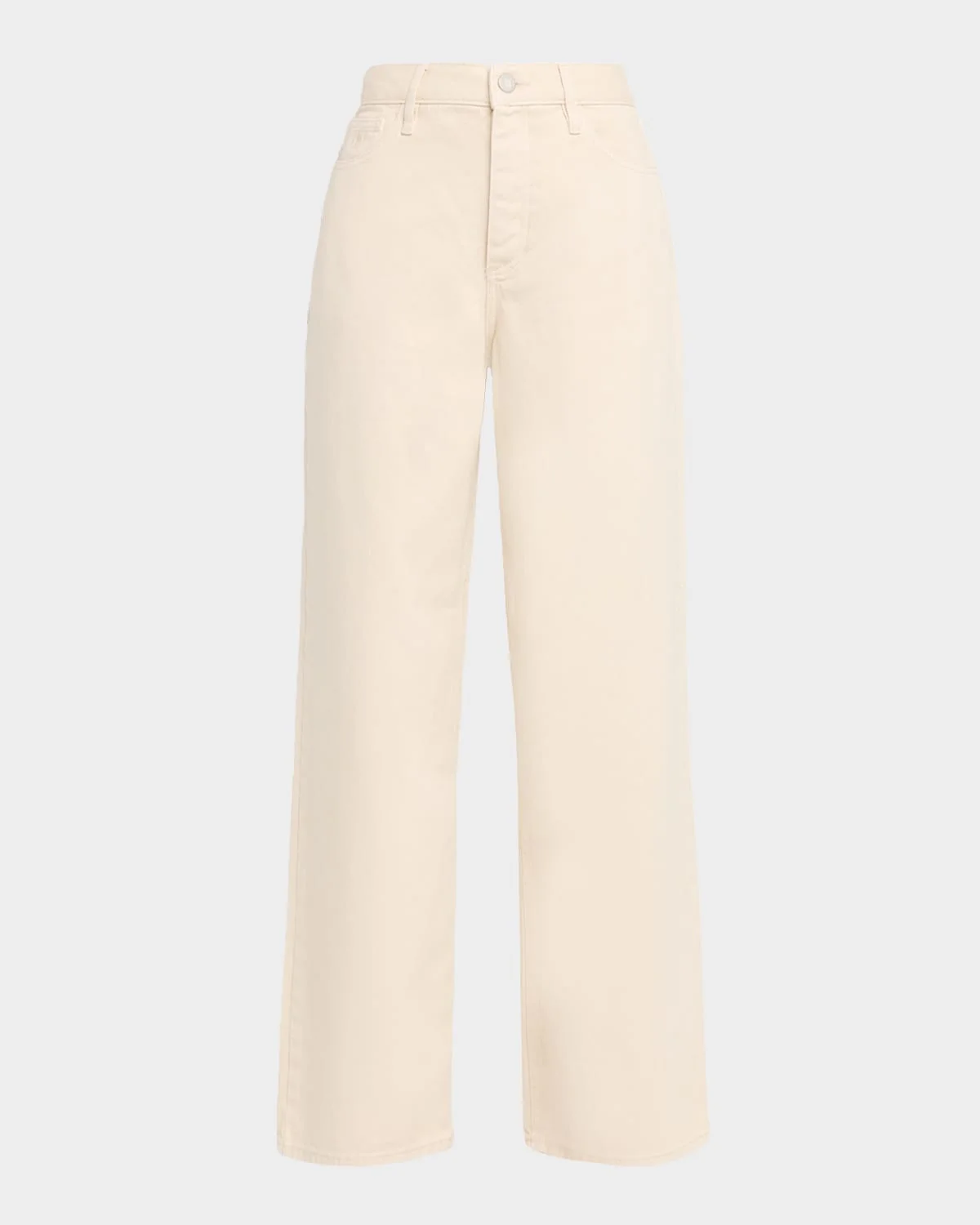 - By Malene Birger "Vinola" jeans in off-white denim - Approx. 10" rise; 30" inseam - Mid-rise; sits high on the hip - Five-pocket style - Loose fit with a subtle flare - Ankle length - Button/zip fly; belt loops - Organic cotton - Machine wash cold - Imported