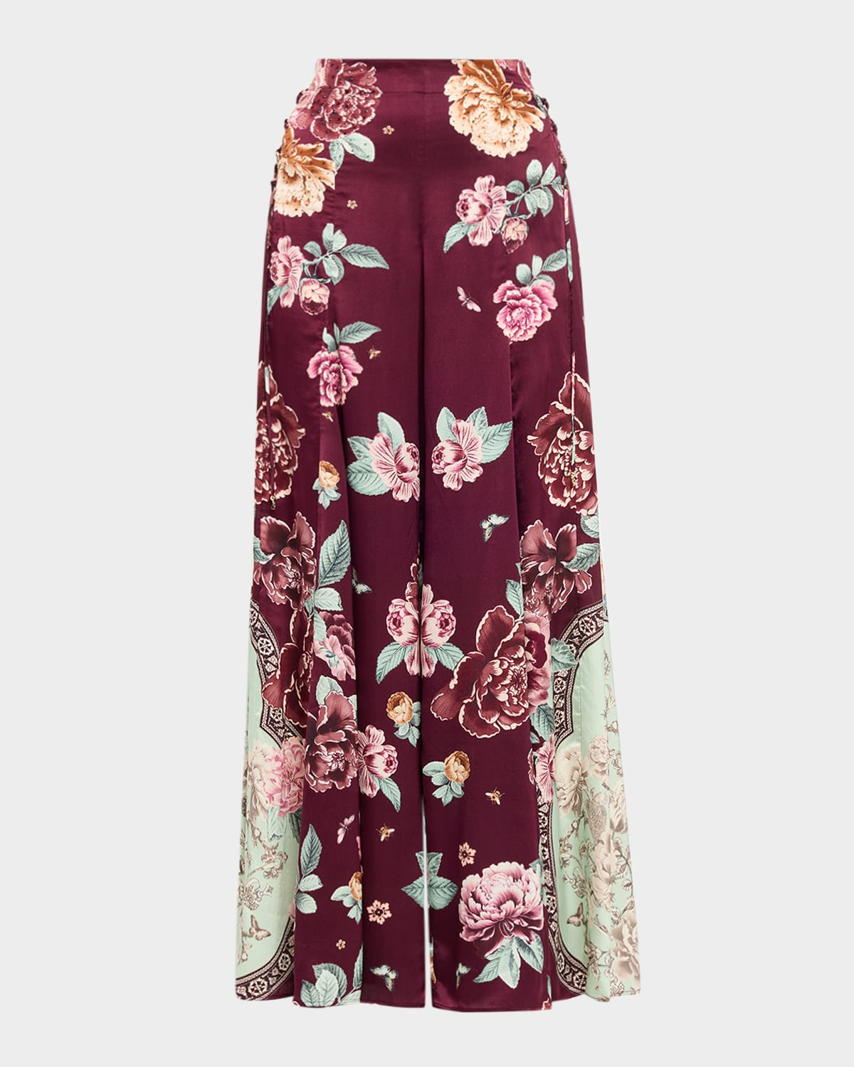 Framed with laceup selftie side details, these lustrous satin pants by Camilla feature contrast front godets that create fluid movement with every step Highrise waistband Cropped at the ankle Wide legs Pullon style Nylon/polyamide/elastane Dry clean Imported