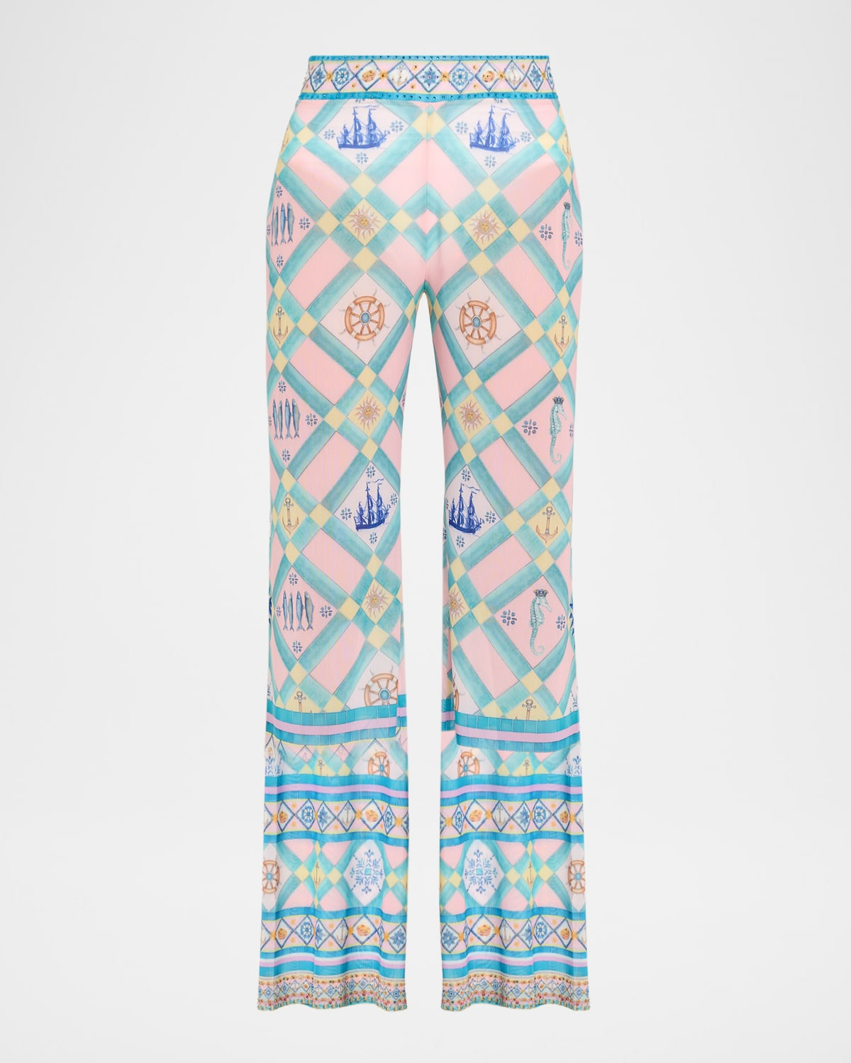 - Crafted from stretch mesh in a kaleidoscopic coastal print, these pants by Camilla are finished with crystals - Mid-rise waistband - Relaxed fit through straight legs - Full length - Pull-on style - Polyester/elastane - Imported