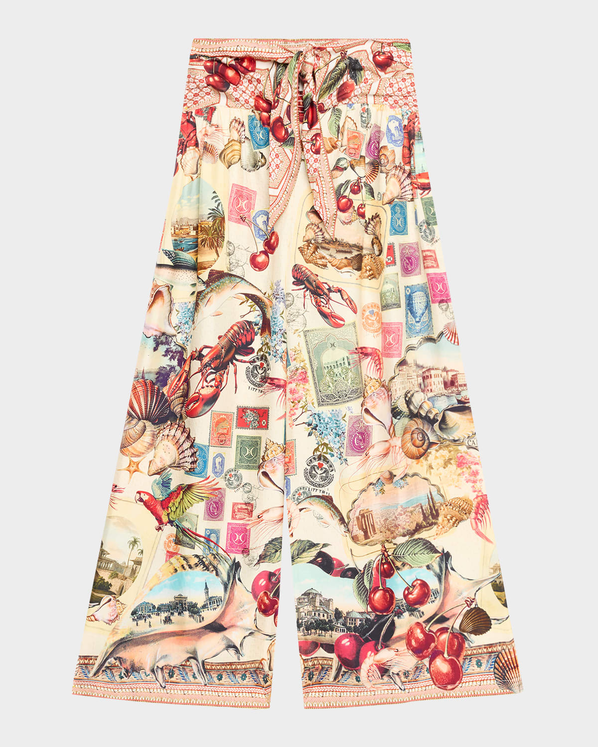 Handcrafted of silk in an exclusive postcard print, these pants by Camilla are finished with intricately applied crystal embellishments Highrise selftie waistband Full length Relaxed fit Wide legs Pullon style Silk Dry clean Imported