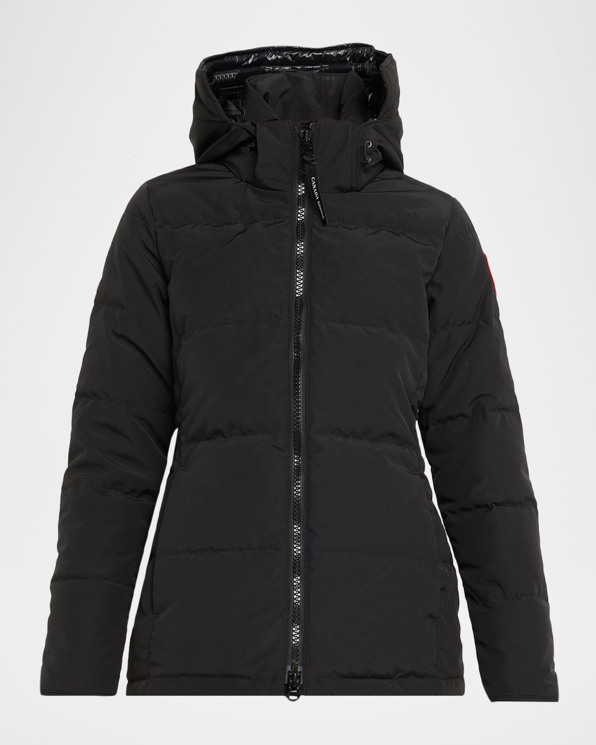 Canada Goose "Chelsea" parka jacket in a classic styling Stand collar; hooded Twoway zip front Long sleeves; left patch pocket Side slip pockets Midlength Relaxed fit Polyester/cotton Lining: Recycled nylon Fill: Feather/down Made in Canada