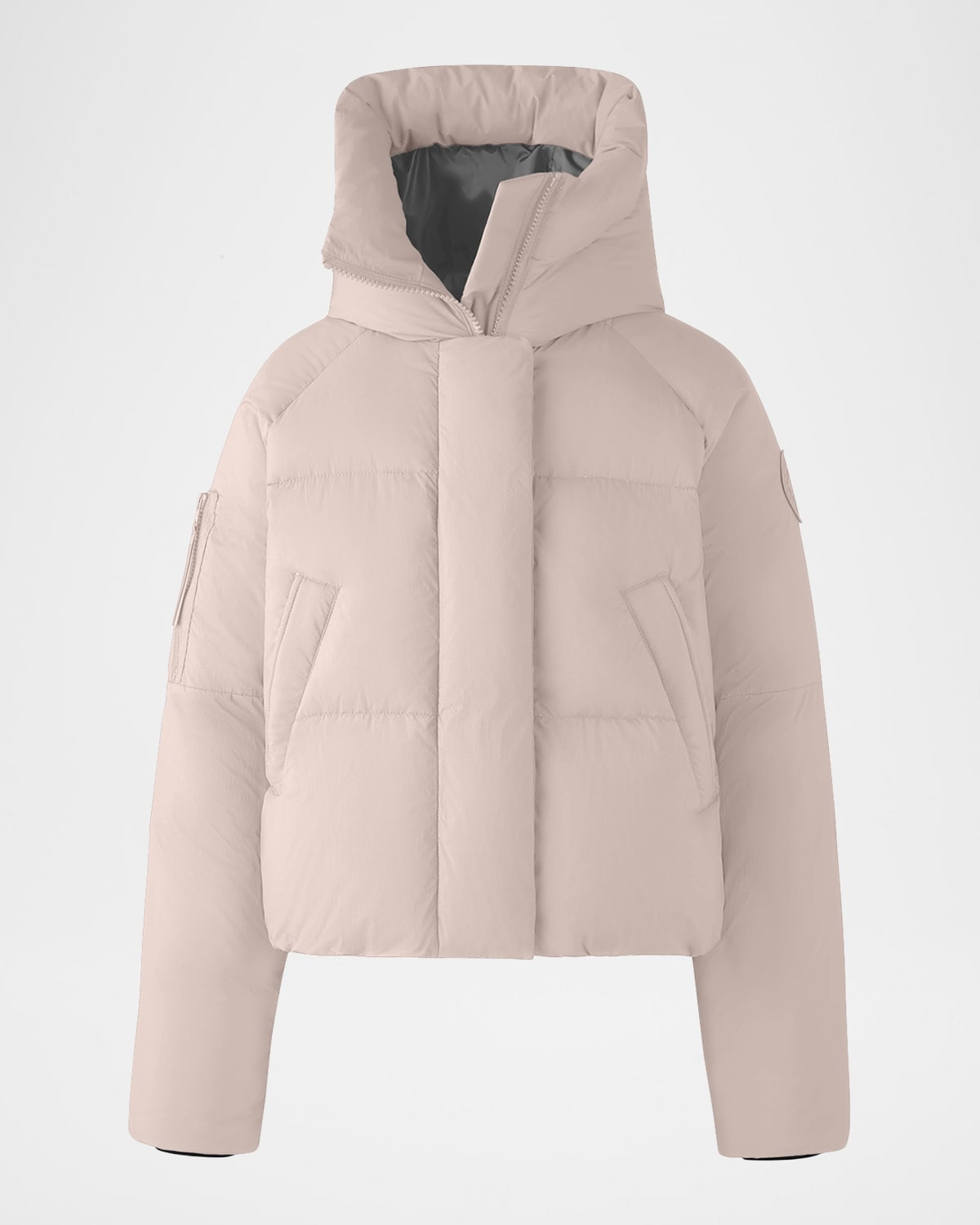 Modernized with a bubble silhouette, the "Chilliwack" puffer jacket by Canada Goose is crafted from Recycled EnduraLuxe with a matte finish that keeps you warm and offers waterrepellent protection. Cold weather protection down to 5°F Interior backpack straps for handsfree carrying Adjustable hooded neckline Long sleeves with ribknit cuffs Signature logo patch on the left sleeve Side zip pockets; zip sleeve pocket Relaxed fit Drawcord hem Twoway zipfront with snap placket Nylon/polyamide Fill: Down/feather Lining: Nylon Machine wash cold, inside out Made in Canada