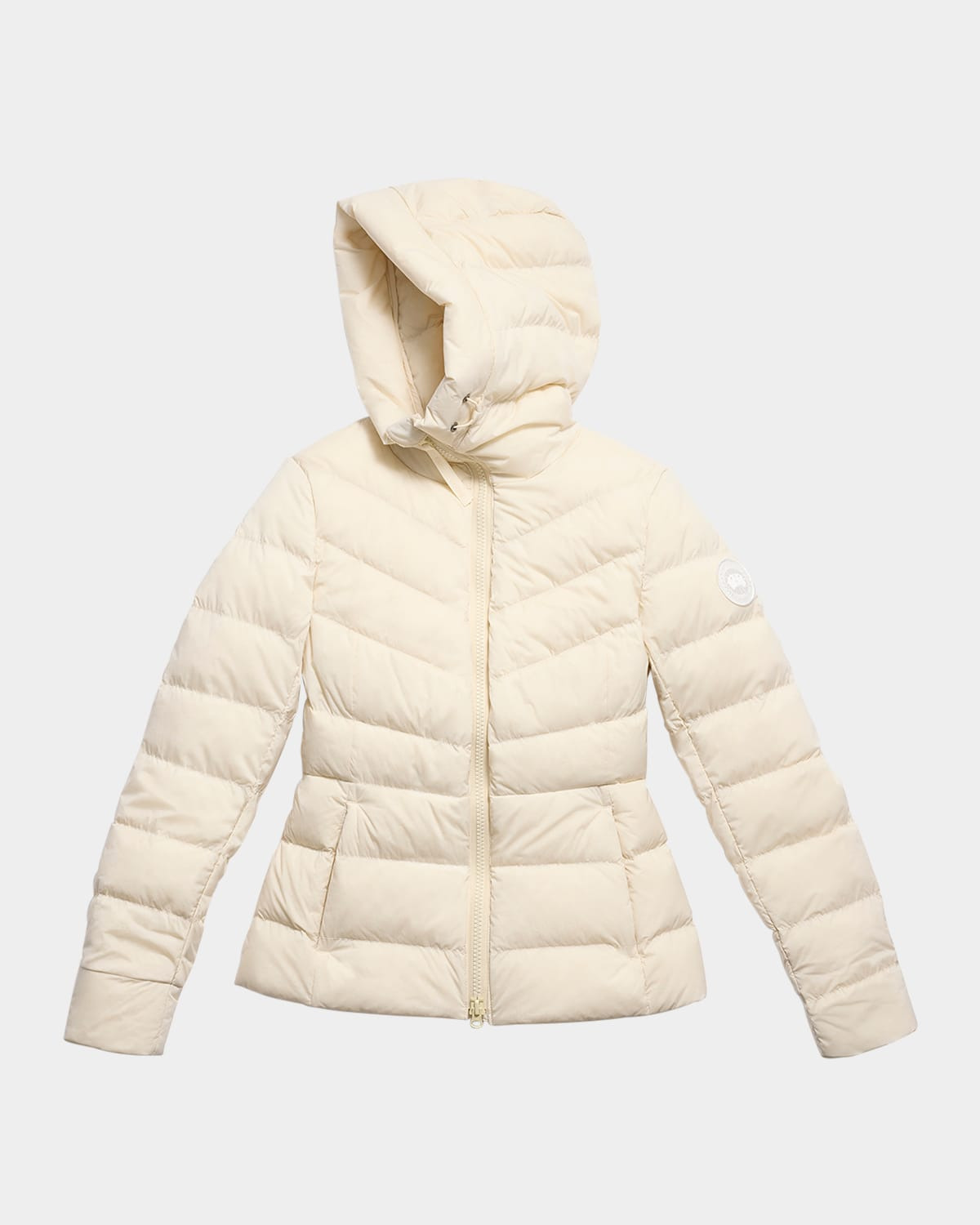 - Canada Goose "Clair" quilted puffer jacket - Interior straps allow jacket to be carried hands-free - Adjustable drawstring hood - Long sleeves with power-stretch cuffs - Logo patch at left sleeve - Side zip pockets - Contoured fit - Hip-length - Two-way zip-front - Nylon/polyamide/elastane - Fill: Down/feather - Lining: Recycled nylon - Machine wash cold - Made in Canada