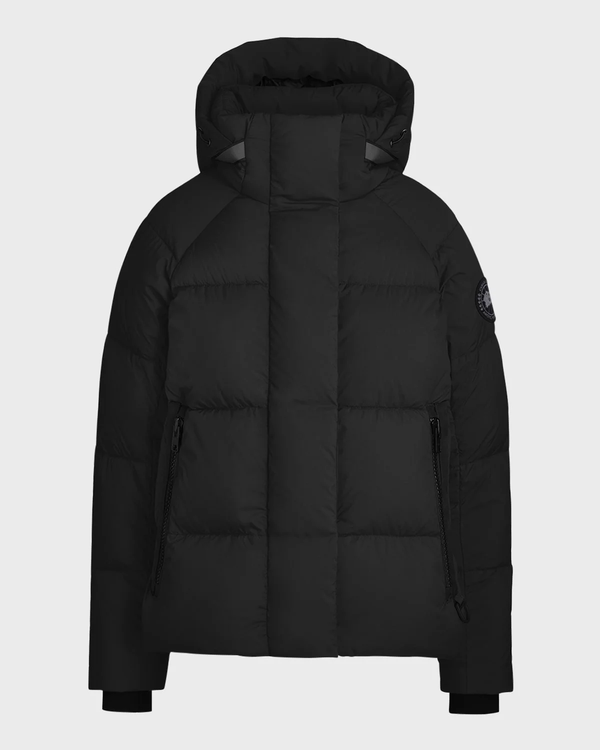 Canada Goose "Junction" lightweight puffer jacket crafted using ultrasoft water and windresistant EnduraLuxe fabric Highabrasion areas are reinforced with CORDURA® fabric for added durability Reflective webbing along the back of the hood and a reflective strip around the collar adds visibility in low light Removable premium thermal hood is adjustable in two ways Downfilled placket with hidden snap closures over a twoway zipper to keep the elements out Long sleeves; ribknit cuffs add comfort and lock in heat Logo patch at left sleeve Interior backpack straps allow the jacket to be carried handsfree over the shoulders DRing on the wearer's left pocket can be used to attach gloves or other necessities Three exterior pockets: fleecelined hand warmer pockets with twoway zipper closures and a security pocket with zipper closure Two interior mesh dropin pockets Hem features an interior drawcord to keep cold winds out Nylon/polyamide Fully lined Fill: Down/Feather Do not iron, machine wash cold, wash inside out Made in Canada