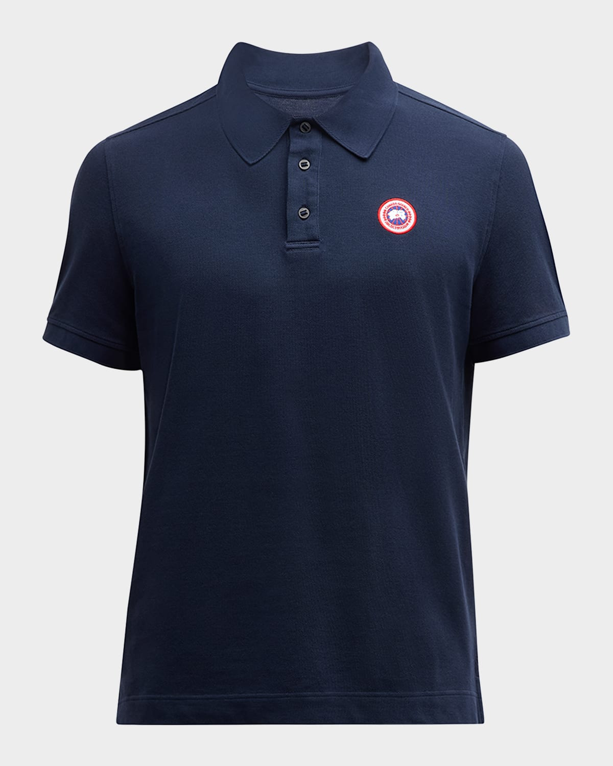 - Offering ultimate breathability and versatility in a timeless polo silhouette, the Berkley polo has a next-to-skin, premium hand feel. - Canada Goose "Beckley" polo shirt in organic cotton pique - Spread collar; three-button placket - Logo patch at chest - Short sleeves - Pullover style - Machine wash cold, line dry, wash inside out - Made in Portugal - Model is 6'1"/185cm.