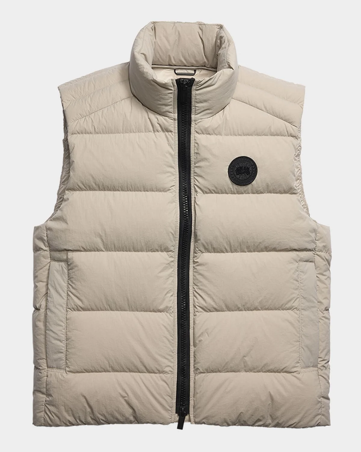 The "Crofton" vest by Canada Goose is lightweight and packable with a modern matte finish and subtle texture. Stand collar Chest logo patch Twoway zip front Two lined zip pockets Packable into the interior left pocket Converts into a cinchable bag with a carrying strap 750 feather/down fill power Nylon/polyamide Machine wash cold 41°F to 23°F temperature rating Made in Canada