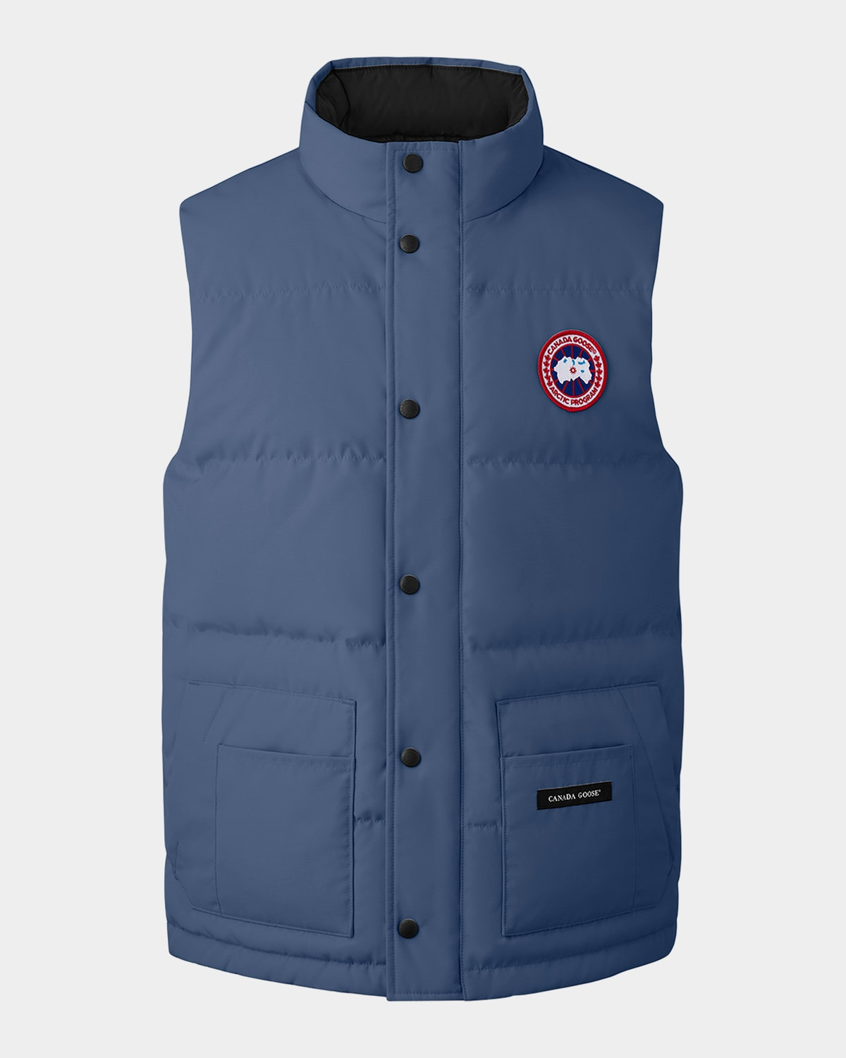 - Canada Goose "Freestyle" vest with disc logo patch at chest - TEI 1 is optimal for temperatures 40°F to 25°F; It is lightweight and adaptable for active pursuits - Mock neckline with suede tricot lining for warmth and comfort - Storm flap over center front zipper secured with snap buttons to keep out drafts - Maximum storage with unique triple-function layered pockets and an interior security pocket - Polyester/cotton - 80/20 goose down/feather - Dry clean - Made in Canada - The Thermal Experience Index (TEI) is an easy-to-understand five point system that enables you to make an informed choice in your search to find the right parka, jacket, or knitwear for your specific environment and activity. It works using a scale, in which 1 indicates the lightest insulation--jackets, lightweight down for active pursuits--and 5 indicates the warmest parkas we make, the kind trusted in the world’s harshest conditions.