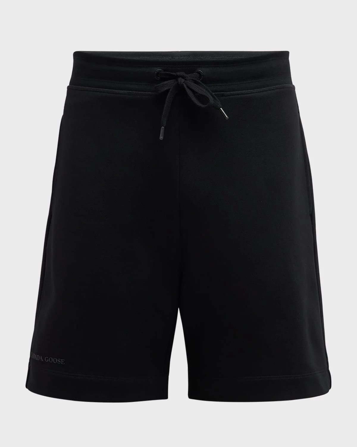 - Made with 100% cotton for softness and breathability, the Huron is your go-to for function and versatility. - Canada Goose "Huron" shorts in medium-weight cotton - Rib-knit waist provides a tailored fit - Drawcord with branded eyelets - Two front hand pockets - One right back pocket - Relaxed legs - Tonal logo at front right hem - Dry clean, machine wash cold, line dry - Made in Italy - Model is 6'1"/185cm.