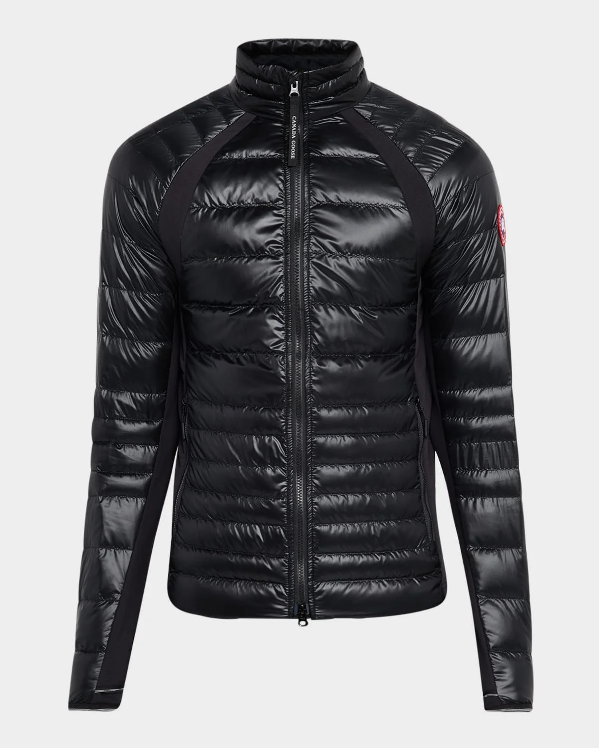- Canada Goose "HyBridge® Lite" weightless, fitted jacket - Thermal Mapping® technology for warmth, breathability and movement - Flex points for enhanced fit and range of motion - Tricot-lined collar; signature double-stripe reflective details at back - Storm flap underneath 2-way zipper - Two exterior pockets: hand pockets with zipper closures, lined with mesh for added ventilation - Two interior pockets: lower drop-in pockets - Cuffs with discreet thumbholes - Reflective stitching on cuffs - Packable into pocket - Goose down fill - Nylon/polyamide - Machine wash cold - Made in Canada