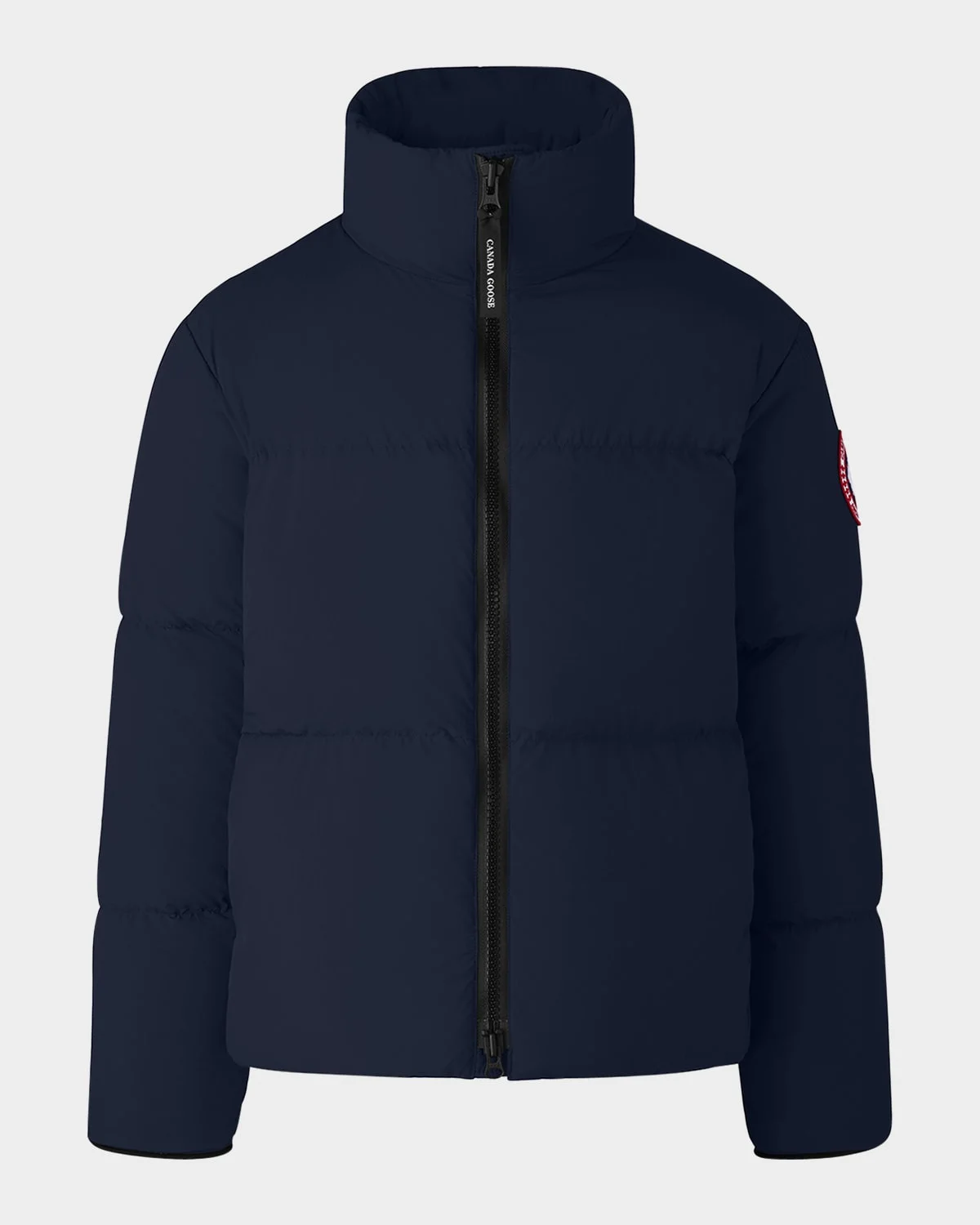 - Canada Goose "Lawrence" puffer jacket made with recycled Enduraluxe, a water-repellant fabric with a durable soft-to-the-touch finish - TEI 3 is optimal for temperatures 15°F to -5°F; it is fundamental warmth fashioned for everyday use. - Structured down-filled collar - Sueded tricot chin guard adds softness and comfort - Two-way front zipper for added range of motion and venting - Two exterior pockets with zipper closures - Recessed rib knit cuffs add comfort and lock in heat - CORDURA® piping at sleeve hem - Hem is longer in the back for added protection - Reflective double stripe grab strap on back - Interior backpack straps - Nylon - Lining: Recycled polyester - Fill: Down/feather - Machine wash cold - Made in Canada - The Thermal Experience Index (TEI) is an easy-to-understand five point system that enables you to make an informed choice in your search to find the right parka, jacket, or knitwear for your specific environment and activity. It works using a scale, in which 1 indicates the lightest insulation--jackets, lightweight down for active pursuits--and 5 indicates the warmest parkas we make, the kind trusted in the world’s harshest conditions.