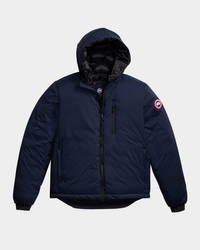 Canada Goose "Lodge" insulated hoodie TEI2 is optimal for temperatures 30°f to 5°f; It is versatile and ideal for core warmth comfort Packs into right interior zipper pocket for easy storage Adjustable downfilled hood adds warmth and element protection Chin guard is lined with tricot fabric for softness and comfort Power stretch® cuffs enhance fit and add comfort Hem is longer in the back for added coverage and protection Interior drawcord customizes fit and traps heat towards the body Storm flap underneath twoway zipper keeps the elements out Unzip from the bottom for added range of motion or venting Three exterior pockets: one zippered chest pocket, two zippered side entry hand pockets 750 fill power, 90/10 white duck down/feathers Nylon/polyamide Lining: Recycled polyester Made in Canada