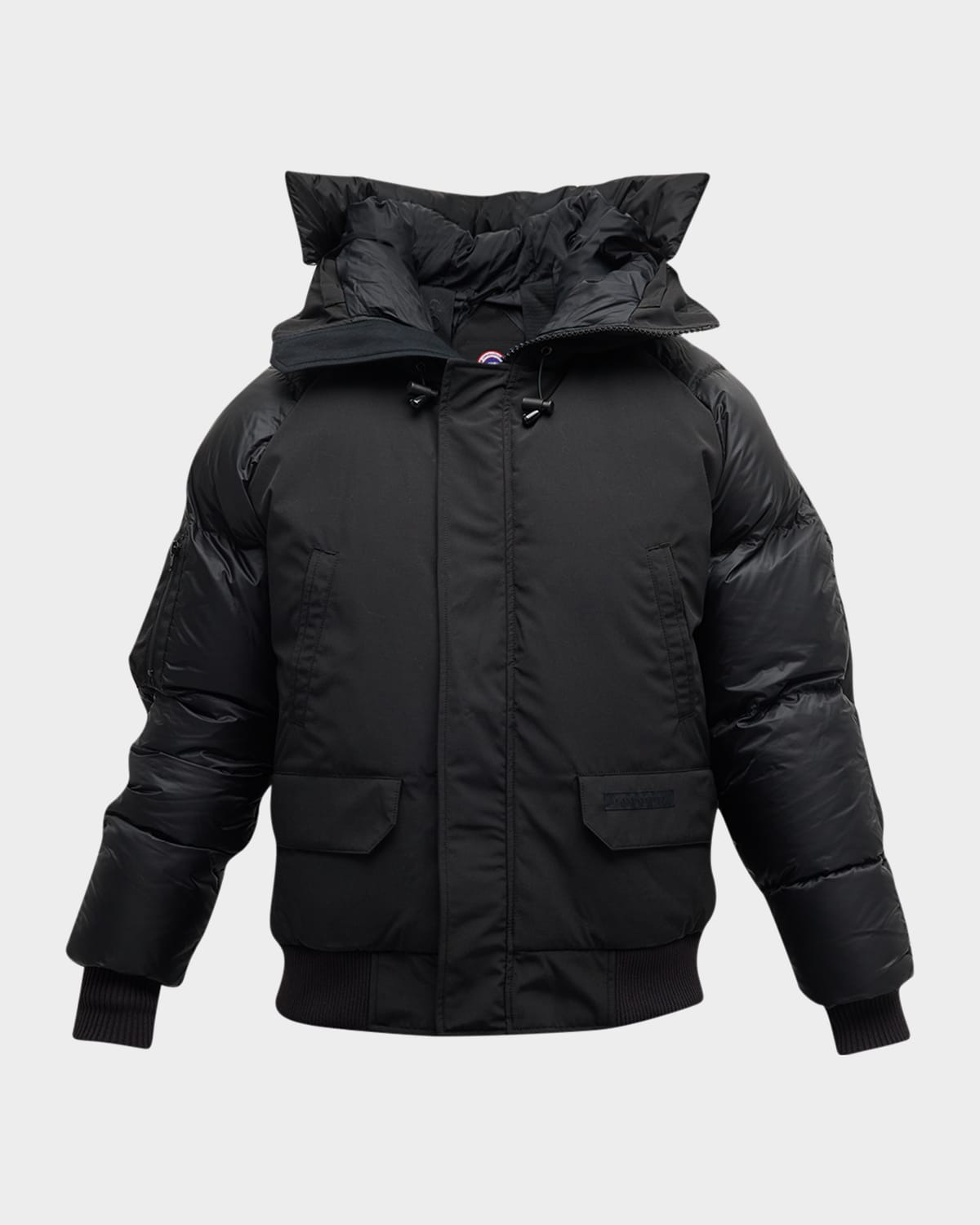 - The Paradigm Chilliwack reimagines one of our most iconic silhouettes in two best-selling fabrics for a modern, mixed-media style. With an adjustable hood for added protection on chilly days and quilted down-filled sleeves, the Chilliwack Bomber combines warmth with durability and mobility for easy all-season wear. - Canada Goose "Paradigm Chilliwack" bomber jacket - TEI 3 is optimal for temperatures 15°F to -5°F; it is fundamental warmth fashioned for everyday use. - Adjustable down-filled hood with removable brim - Sueded tricot chin guard provides a soft touch - Two-way front zipper with placket for extra coverage - Lightweight quilted down filled sleeves - Webbing grab strap at upper back with ‘Canada Goose' emblem patch - Recycled Organic Arctic Tech® elbow patches for premium durability - Rib-knit hem and cuffs that lock in heat - Five exterior pockets: two hand warmer pockets, two lower pockets with flap closure, One utility pocket on the sleeve - Three interior pockets: two drop-in pockets, one zippered security pocket - Polyester; down fill - Lining: Nylon - Dry clean - Made in Canada - The Thermal Experience Index (TEI) is an easy-to-understand five point system that enables you to make an informed choice in your search to find the right parka, jacket, or knitwear for your specific environment and activity. It works using a scale, in which 1 indicates the lightest insulation--jackets, lightweight down for active pursuits--and 5 indicates the warmest parkas we make, the kind trusted in the world’s harshest conditions.