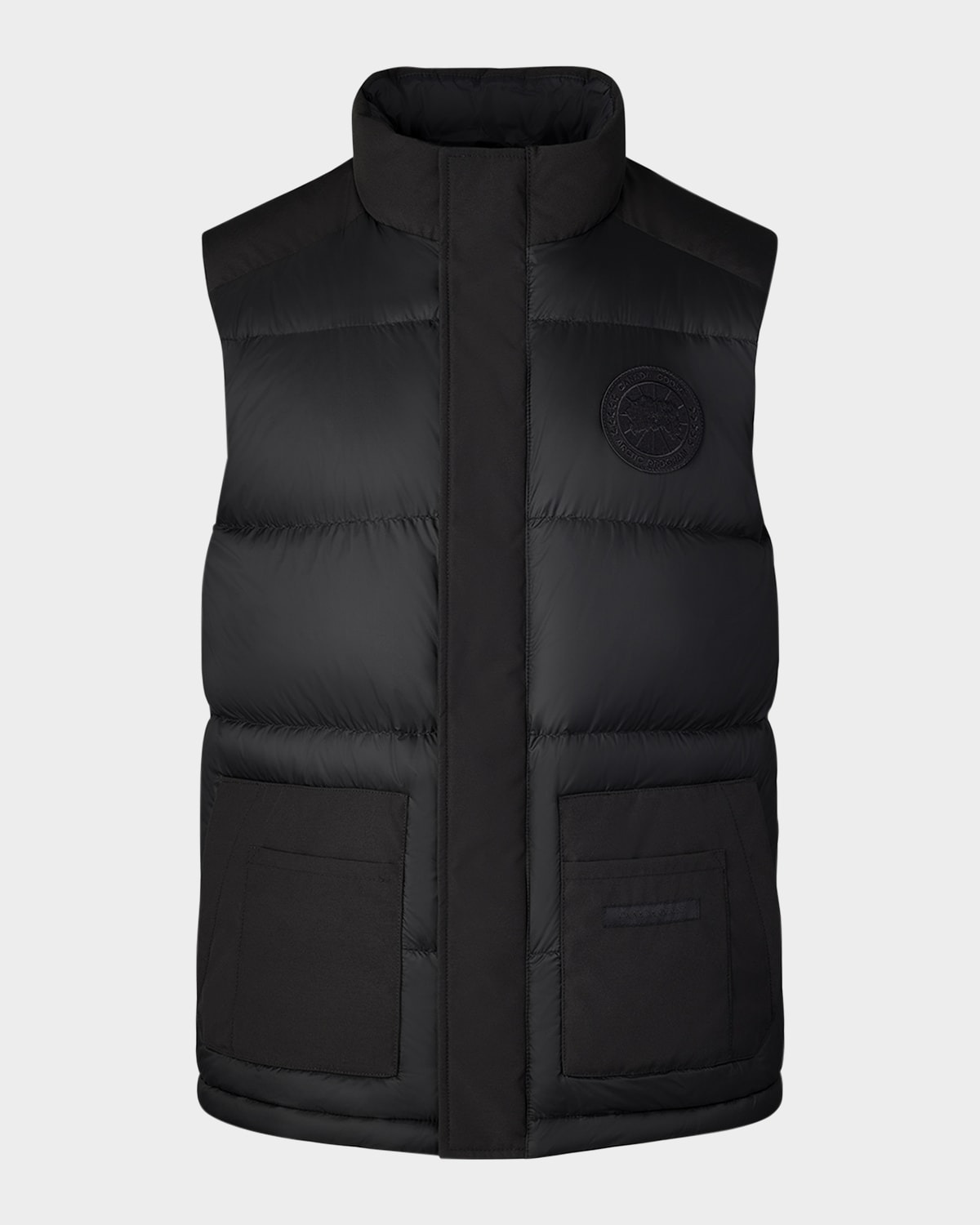 - Canada Goose "Paradigm Freestyle" vest - TEI 1 is optimal for temperatures 40°F to 25°F; It is lightweight and adaptable for active pursuits - Structured down-filled collar - Fleece-lined chin guard - Two-way front zipper with placket for extra coverage - Webbing grab strap at upper back with ‘Canada Goose' emblem patch - Two exterior pockets: double-entry hand pockets - One interior pocket: zippered security pocket - Polyester; down fill - Lining: Nylon - Machine wash cold - Made in Canada - The Thermal Experience Index (TEI) is an easy-to-understand five point system that enables you to make an informed choice in your search to find the right parka, jacket, or knitwear for your specific environment and activity. It works using a scale, in which 1 indicates the lightest insulation--jackets, lightweight down for active pursuits--and 5 indicates the warmest parkas we make, the kind trusted in the world’s harshest conditions.