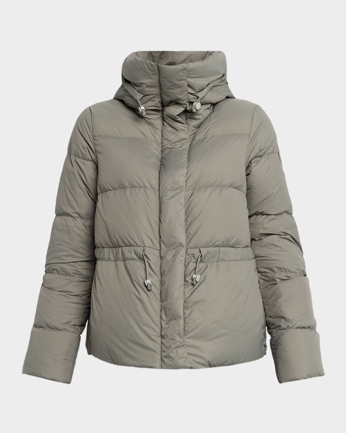 Crafted from ultralightweight Lumina, the "Montgomery" puffer jacket by Canada Goose features an adjustable drawcord hood and waist for a personalized fit that locks in warmth. Coldweather protection down to 4°F. Features interior backpack straps for handsfree carrying Hooded neckline Long sleeves with ribknit cuffs Signature logo patch on the left sleeve Side zip pockets; two interior pockets Classic fit Short length Twoway zipfront with snap placket Nylon/polyamide Fill: Down/feather Lining: Nylon Machine wash cold inside out Made in Canada