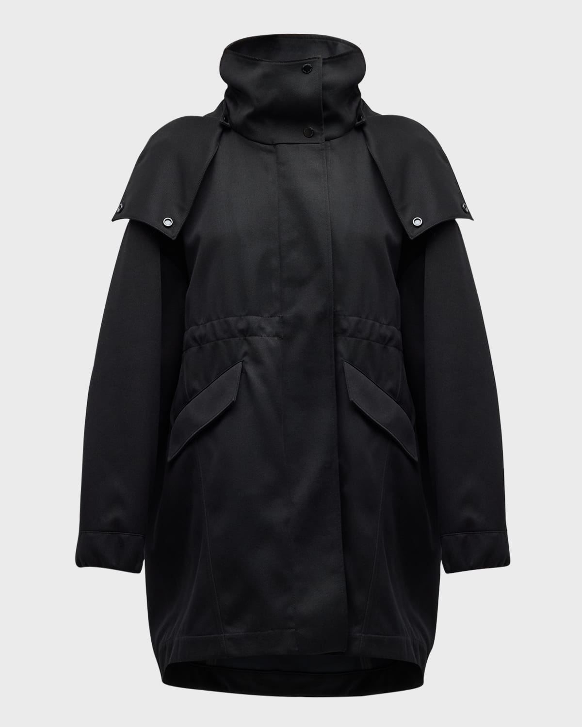 Canada Goose "Olivine" transitional coat crafted from twilla, a midweight twill fabric selected for its timeless finish and unparalleled function Dramatic high collar Removable wrap hood; elasticized details Twoway front zip/snap placket Long sleeves Elasticized waistband Slanted side flap pockets Oversized fit Polyester/cotton/nylon/polyamide Lining: Cotton Made in Canada
