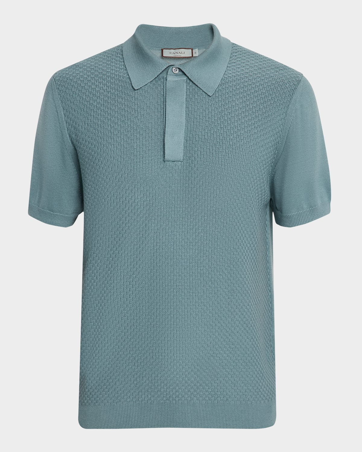 - Canali polo sweater crafted from a cotton and modal blend for the perfect blend of softness and breathability - Characterized by a waffle knit texture - Spread collar - Concealed quarter placket - Short sleeves - Ribbed cuffs and hem - Pullover style - Classic fit - Cotton/modal - Dry clean - Made in Italy