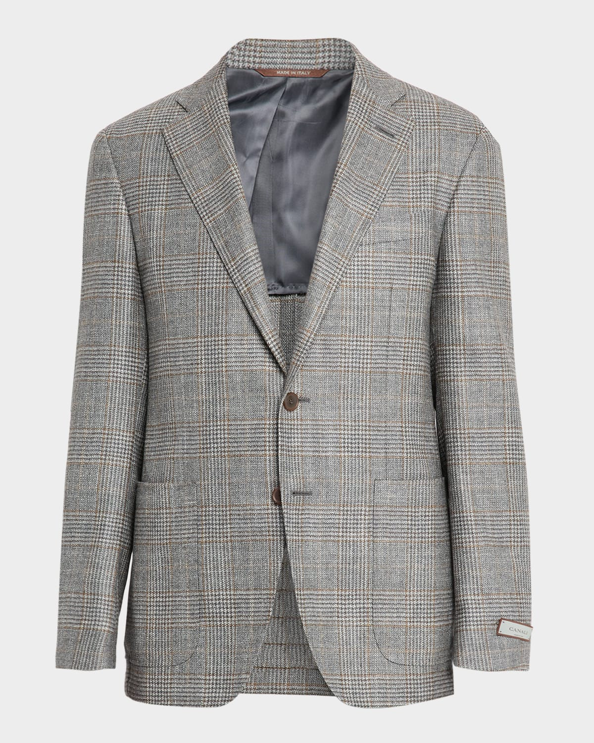 - Canali Glen plaid sport coat in a breathable stepweave wool blend to wrap the body without constricting it - Kei collection - Notch lapels - Single-breasted front - Chest welt pocket - Hip patch pockets - Internal breast pocket - Double-vented back - Tailored fit - Wool/silk/cashmere - Lining: Cupro - Dry clean - Made in Italy