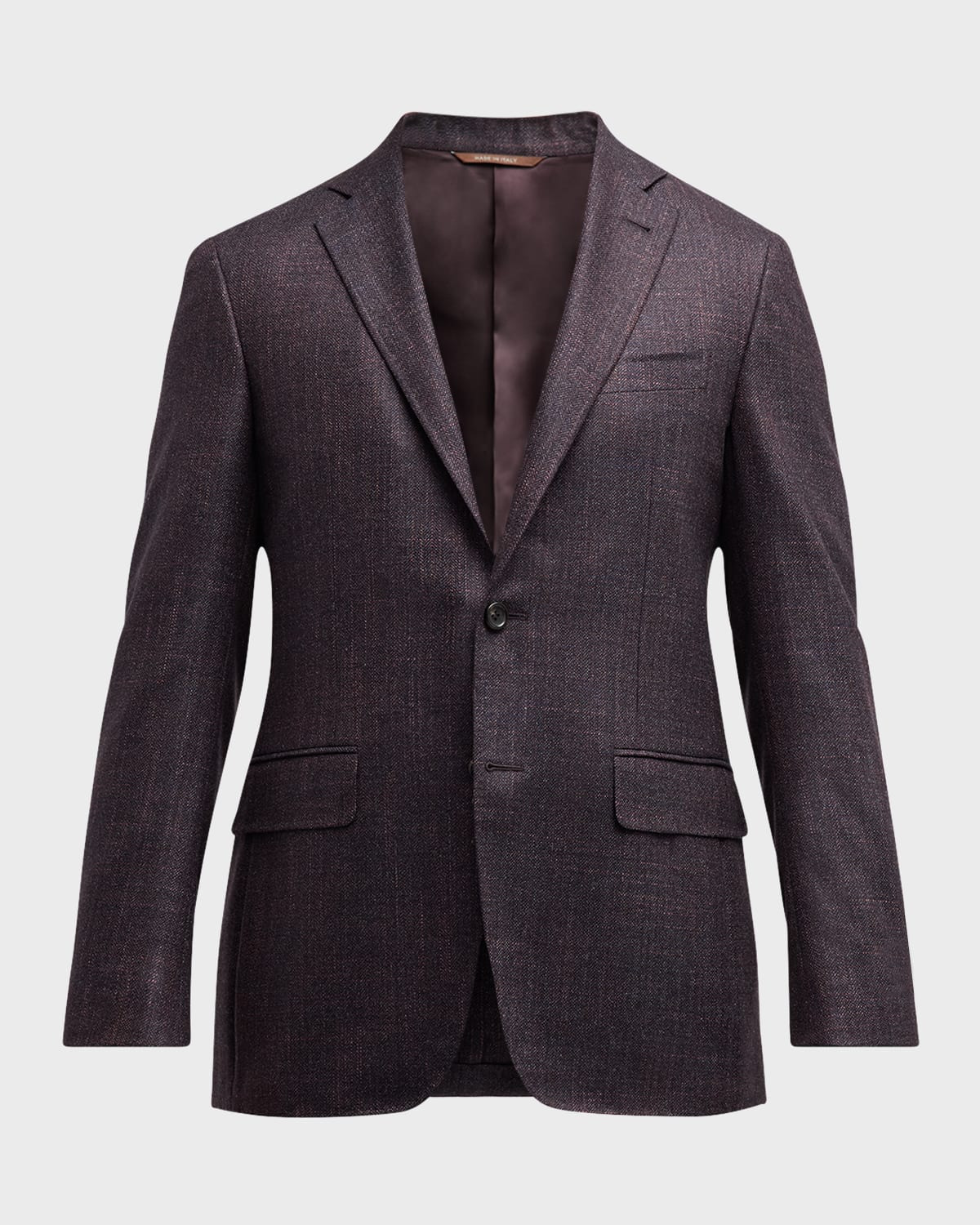 - Canali melange blazer - Notched lapels - Two-button closure - Chest welt pocket - Side flap pockets - Unfinished sleeves - Double-vented back - Wool/silk/cashmere - Lining: Cupro - Dry clean - Made in Italy - Model is 6'1"/185cm.