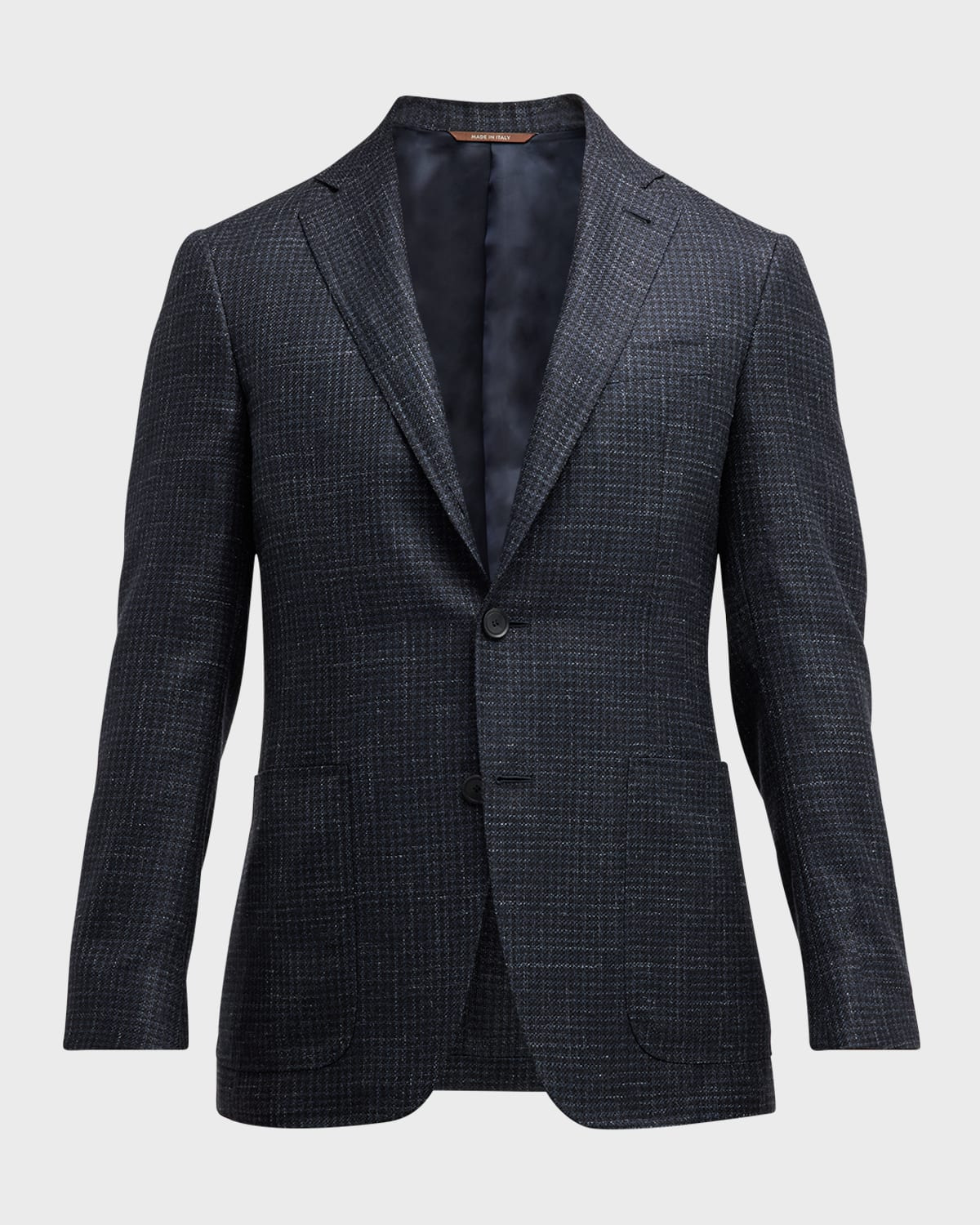 - Canali small check sport coat in wool - Notched lapels; two-button front - Chest welt pocket - Inner ticket pocket - Hip patch pockets - Unfinished sleeves - Double-vented back - Wool - Lining: Cupro - Dry clean - Made in Italy - Model is 6'1"/185cm.