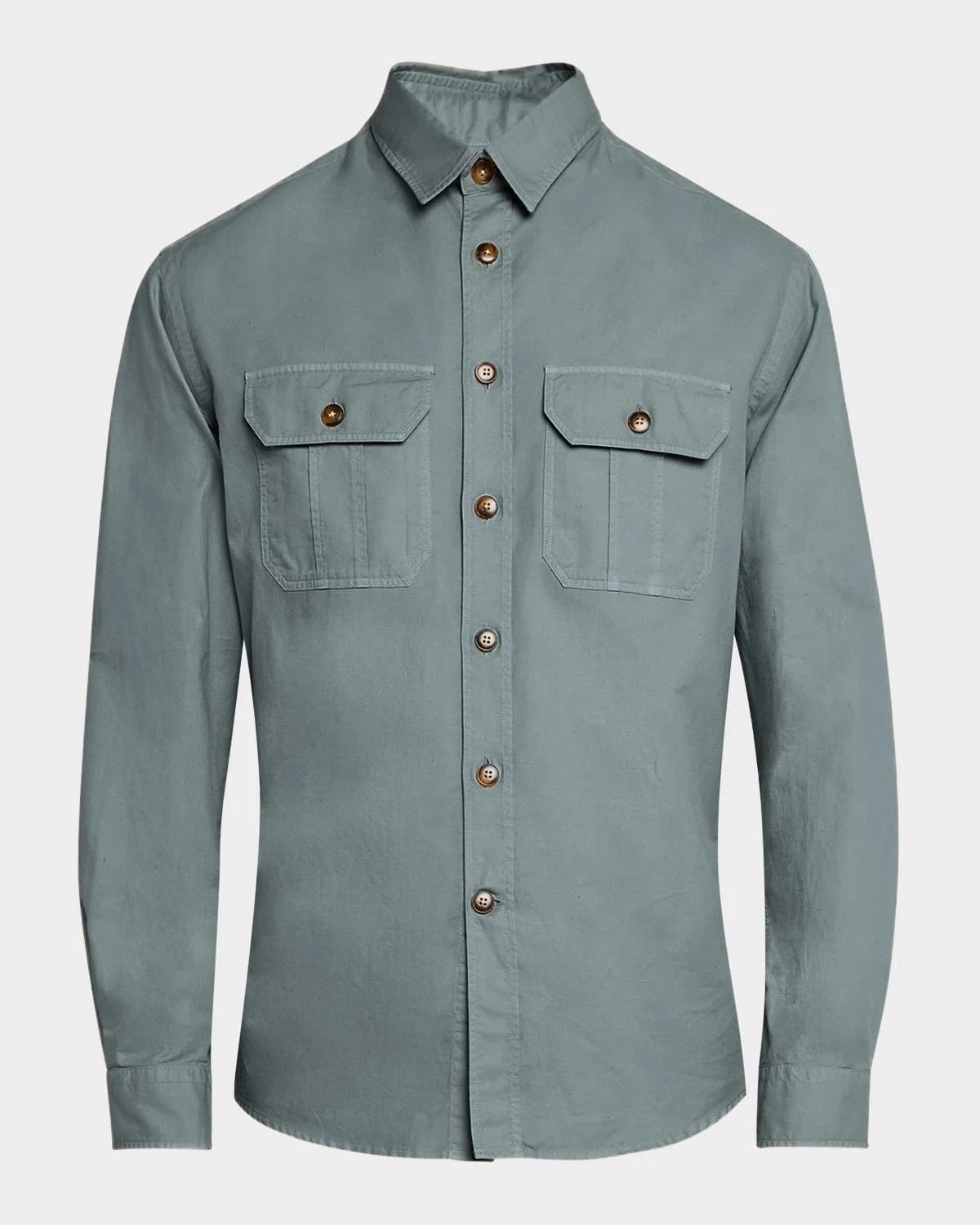 - Canali garment-dyed casual button-down shirt - Point collar - Button placket - Chest flap pockets - Long sleeves - Round barrel cuffs - Back yoke - Curved hem - Cotton/lyocell - Dry clean - Made in Italy