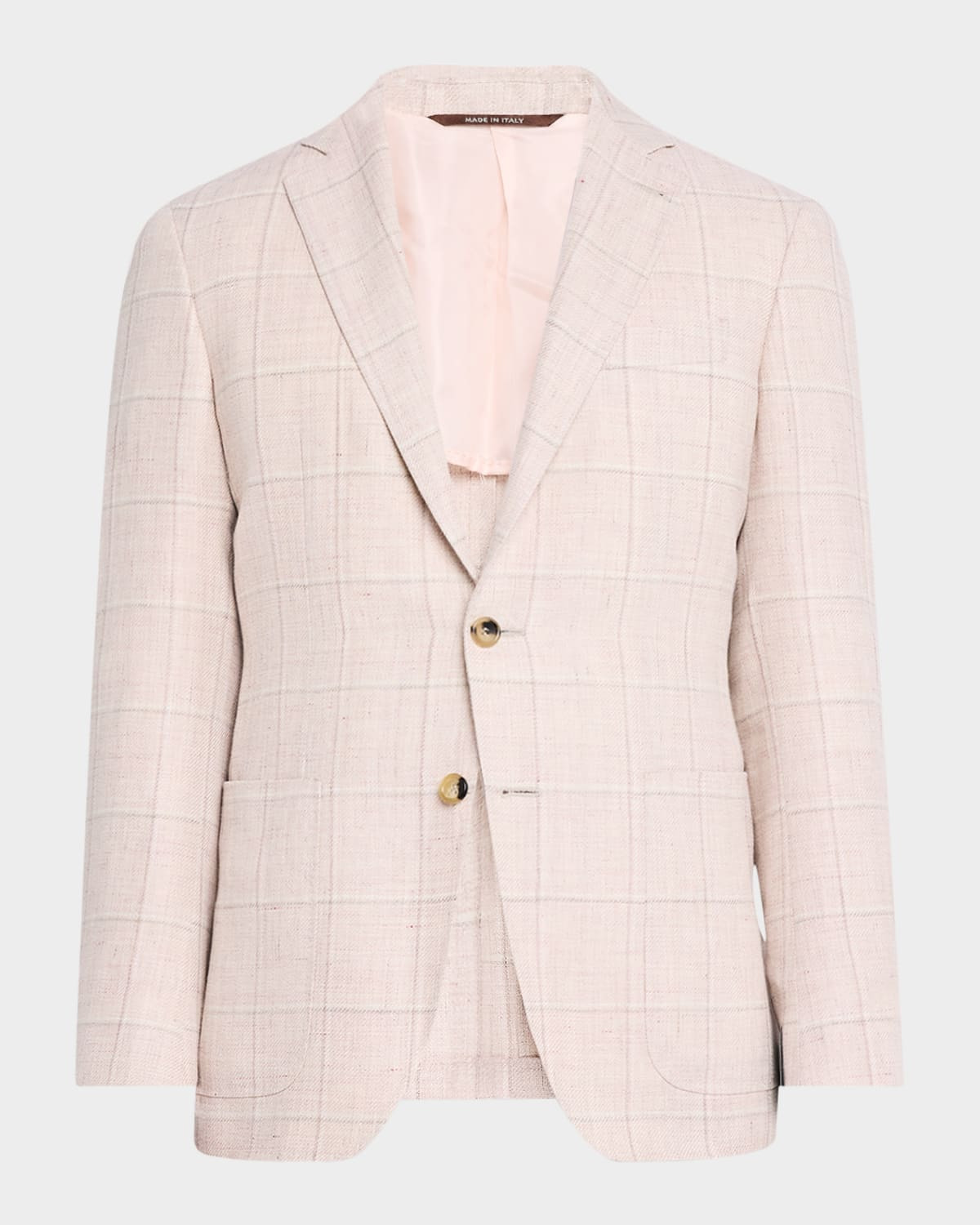 - Canali sport coat in windowpane check - Notch lapels; buttonhole at left lapel - Two-button closure - Chest welt pocket - Hip patch pockets - Unfinished sleeves - Double-vented back - Wool/silk - Lining: Rayon - Dry clean - Made in Italy
