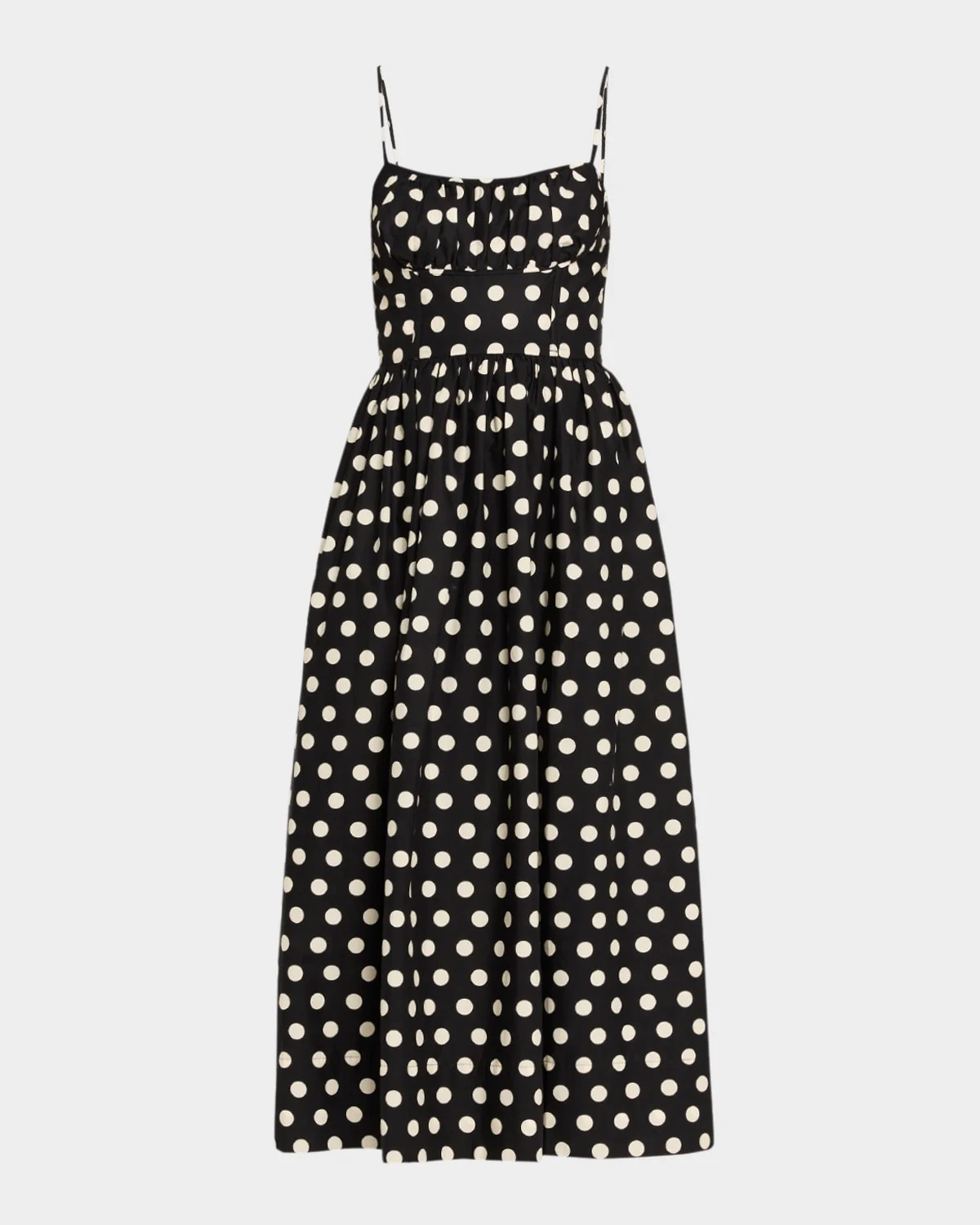 Cara Cara "Alba" floralprint midi dress featuring side pockets Square neckline Adjustable spaghetti straps Smocked back panel Aline silhouette Hem falls below the knee Back zip Cotton Imported