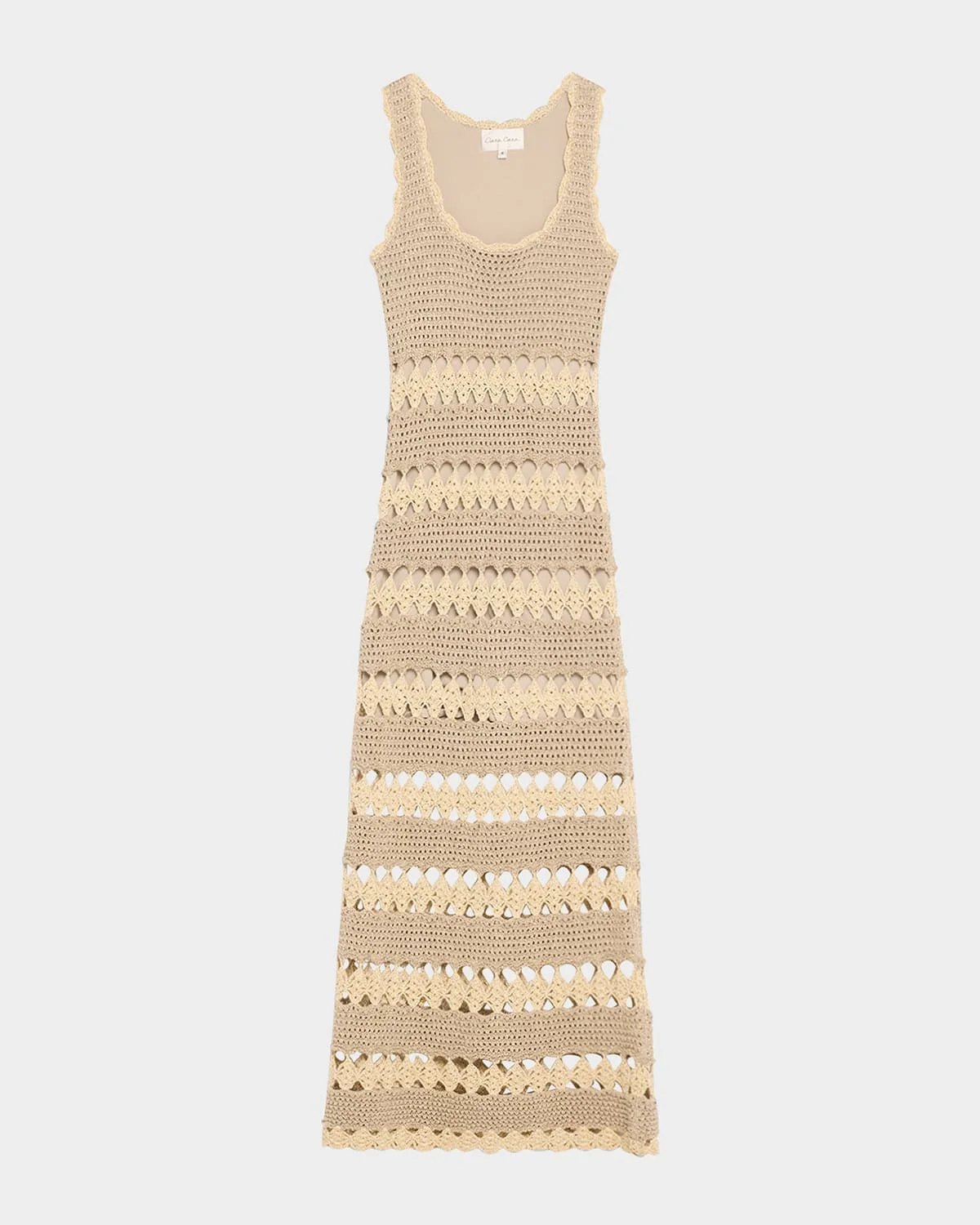 - Cara Cara "Joan" tank dress in a diamond metallic crochet stitch - Scoop neckline - Sleeveless - Hem falls below the knee - Sheath silhouette - Slipover style - Cotton/Lurex® fibers - Jersey lining - Dry clean or hand wash - Imported
