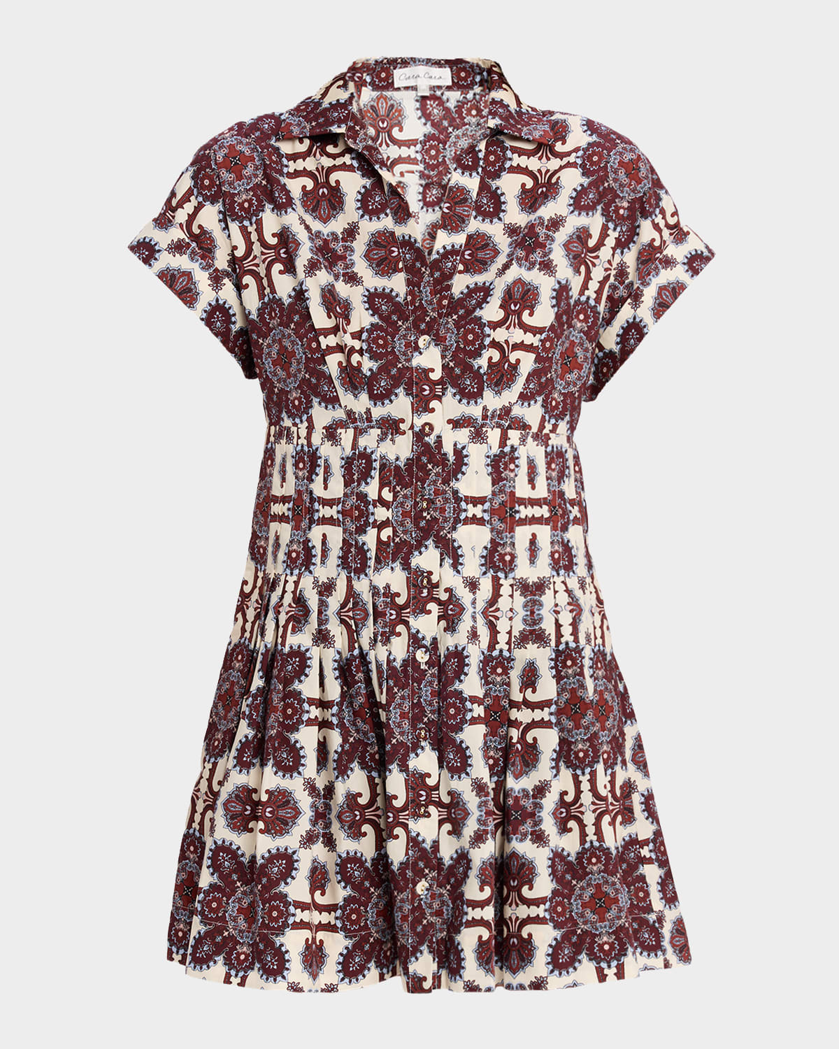 Cara Cara "Nash" printed mini dress featuring a pintuck waist Point collar; split V neckline Short sleeves Shirtdress silhouette Hem falls above the knee Buttonfront Cotton Imported