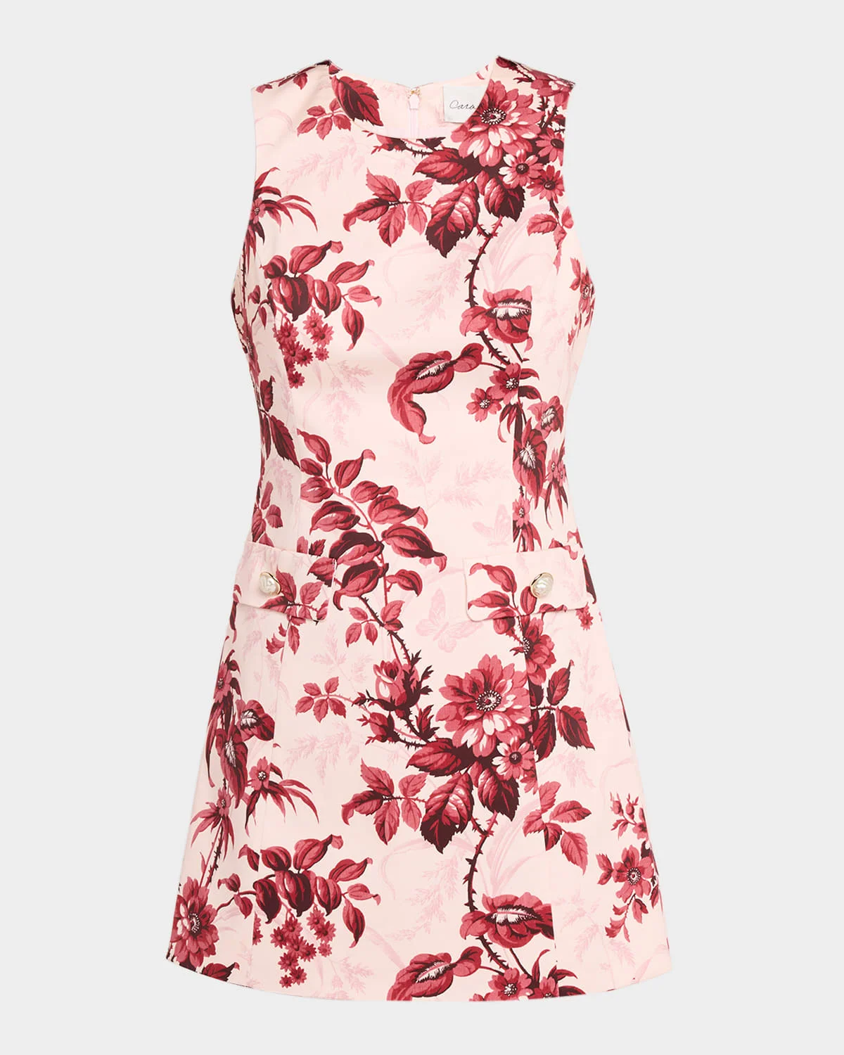 Cara Cara & apos;s "Posie" dress features an allover floral print & nbsp; Round neckline Sleeveless Buttoned flap hip pockets Hem falls above the knee Shift silhouette Invisible back zipper Cotton Dry clean Imported SIZE & FITModel measurements: 5 & apos;10" tallModel is wearing a US size 4/Small