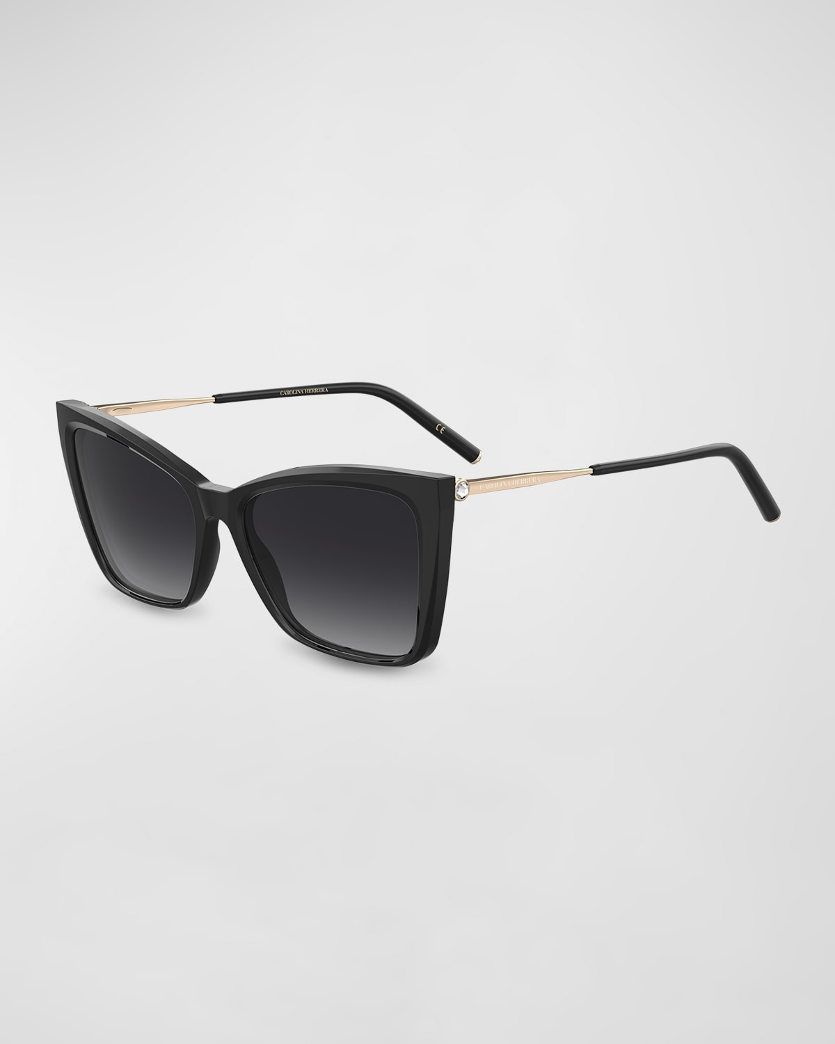 - Carolina Herrera "HER0180S" cat-eye sunglasses in acetate and metal with faux crystals (plastic) - Lens/bridge/temple (in mm): 57-17-145 - Gradient lenses - Saddle nose bridge - Engraved logo on temples - Thin, tapered arms - Capped earpieces - 100% UVA/UVB protection - Imported - Proposition 65 warning for California residents