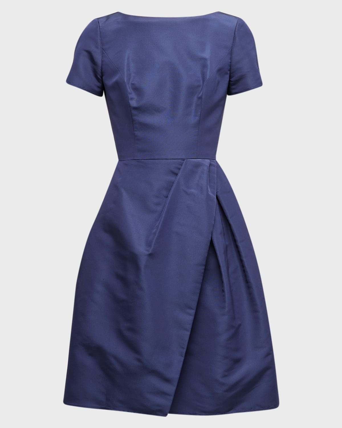 Carolina Herrera cocktail dress in taffeta. Approx. length: 40" from shoulder to hem. Bateau neckline. Short sleeves. Princess seams. Fitandflare silhouette. Hem hits about at the knee. Zips at v back. Silk. Lining, polyester/spandex. Dry clean only. Made in USA.
