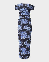 Off-the-Shoulder Floral Gathered Body-Con Dress