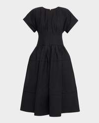 Short-Sleeve Pleated-Waist Midi Dress