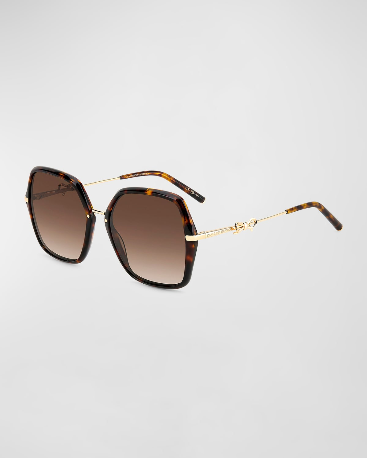 - Carolina Herrera square sunglasses in metal - Eye/bridge/temple (in mm): 57-19-145 - Gradient lenses - Adjustable nose pads - Thin, tapered arms - Capped earpieces - Wipe clean - 100% UVA/UVB protection - Imported - Proposition 65 warning for California residents