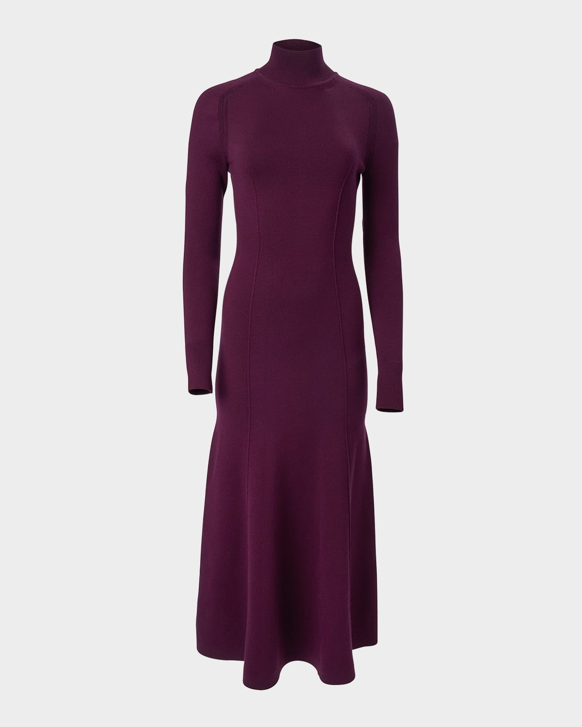 - Carolina Herrera knit dress with flattering front and back body-contouring pintuck seaming - Turtleneck - Long sleeves - Hem falls below the knee - Fit-and-flare silhouette - Invisible back zipper - Virgin wool/silk/nylon/polyamide - Dry clean - Made in Italy