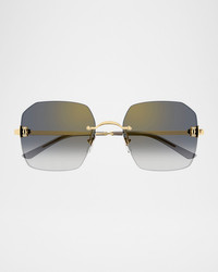 Cartier rimless geometric sunglasses crafted of smooth goldtone metal Eye/bridge/temple (in mm): 5816140 Gradient mirrored lenses Adjustable nose pads Decor C Classique motif at temples Engraved logo Thin, tapered arms Metal 100% UVA/UVB protection Made in France