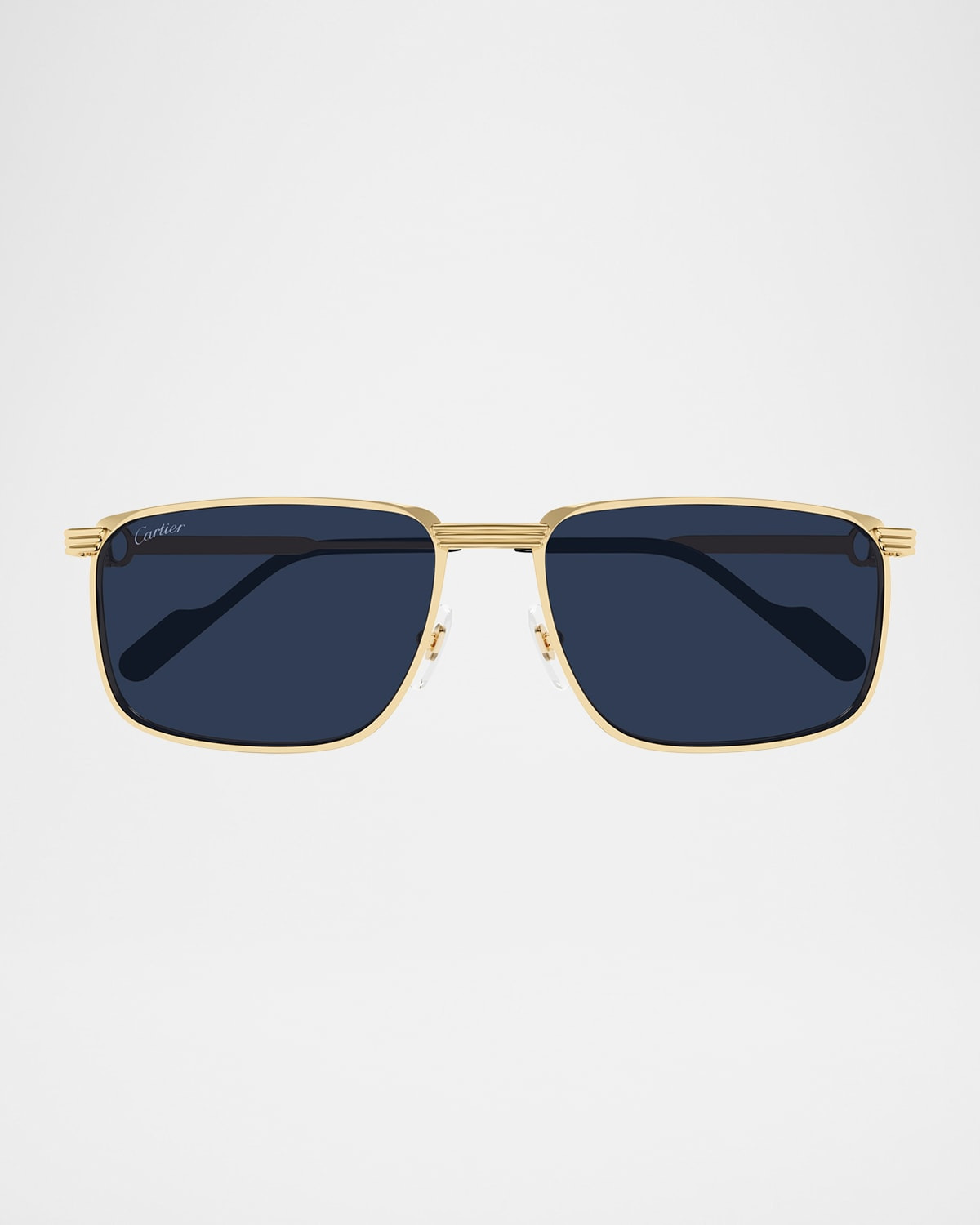 - Cartier "CT0534SM" rectangle sunglasses in metal - Lens/bridge/temple (in mm): - 59-17-145 - Solid-color lenses - Right lens logo script - Adjustable nose pads - C-hinge accent - Thin arms - Curved, capped temple tips - Metal - 100% UVA/UVB protection - Made in France - Proposition 65 warning for California residents