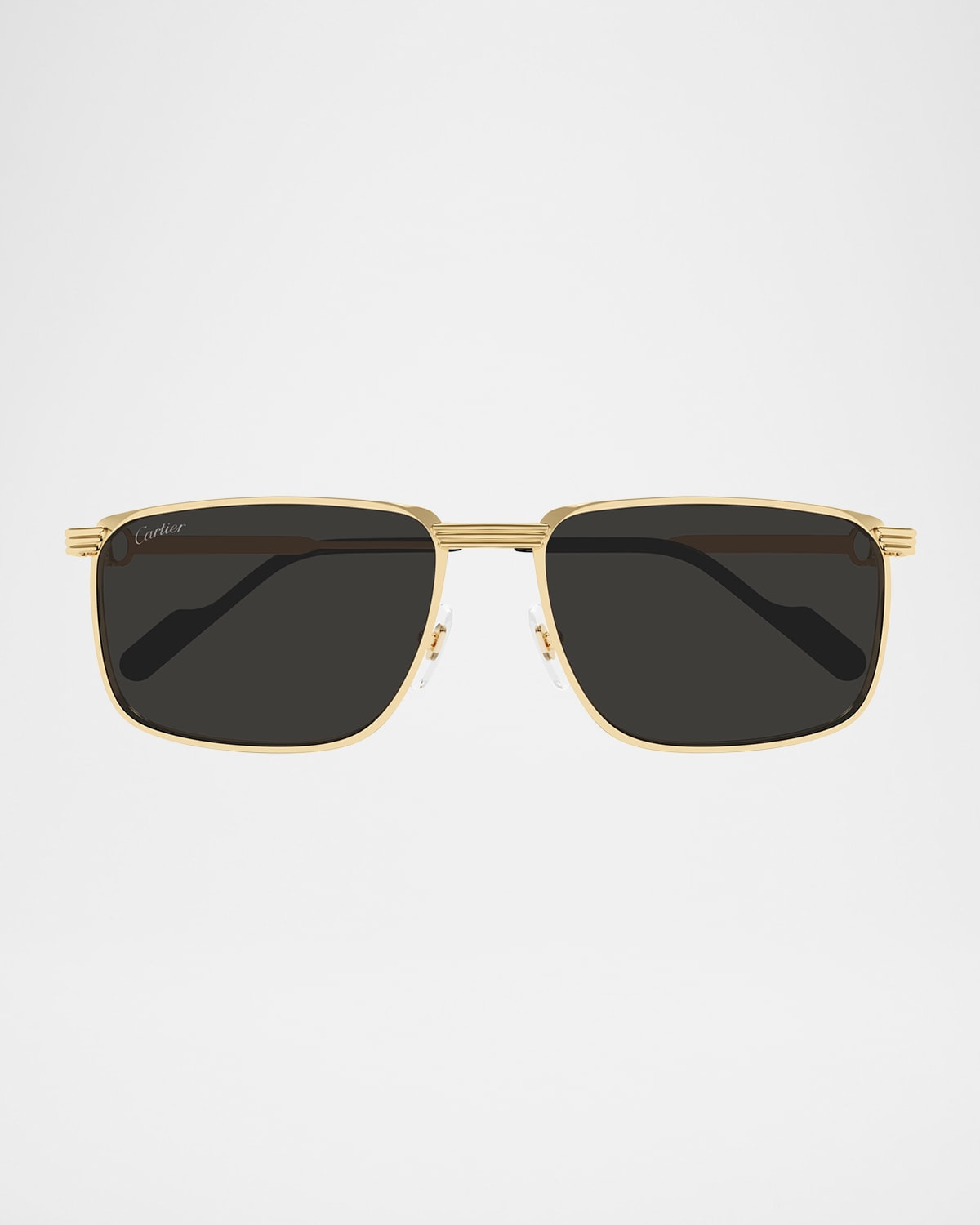 - Cartier "CT0534SM" rectangle sunglasses in metal - Lens/bridge/temple (in mm): - 59-17-145 - Solid-color lenses - Right lens logo script - Adjustable nose pads - C-hinge accent - Thin arms - Curved, capped temple tips - Metal - 100% UVA/UVB protection - Made in France - Proposition 65 warning for California residents