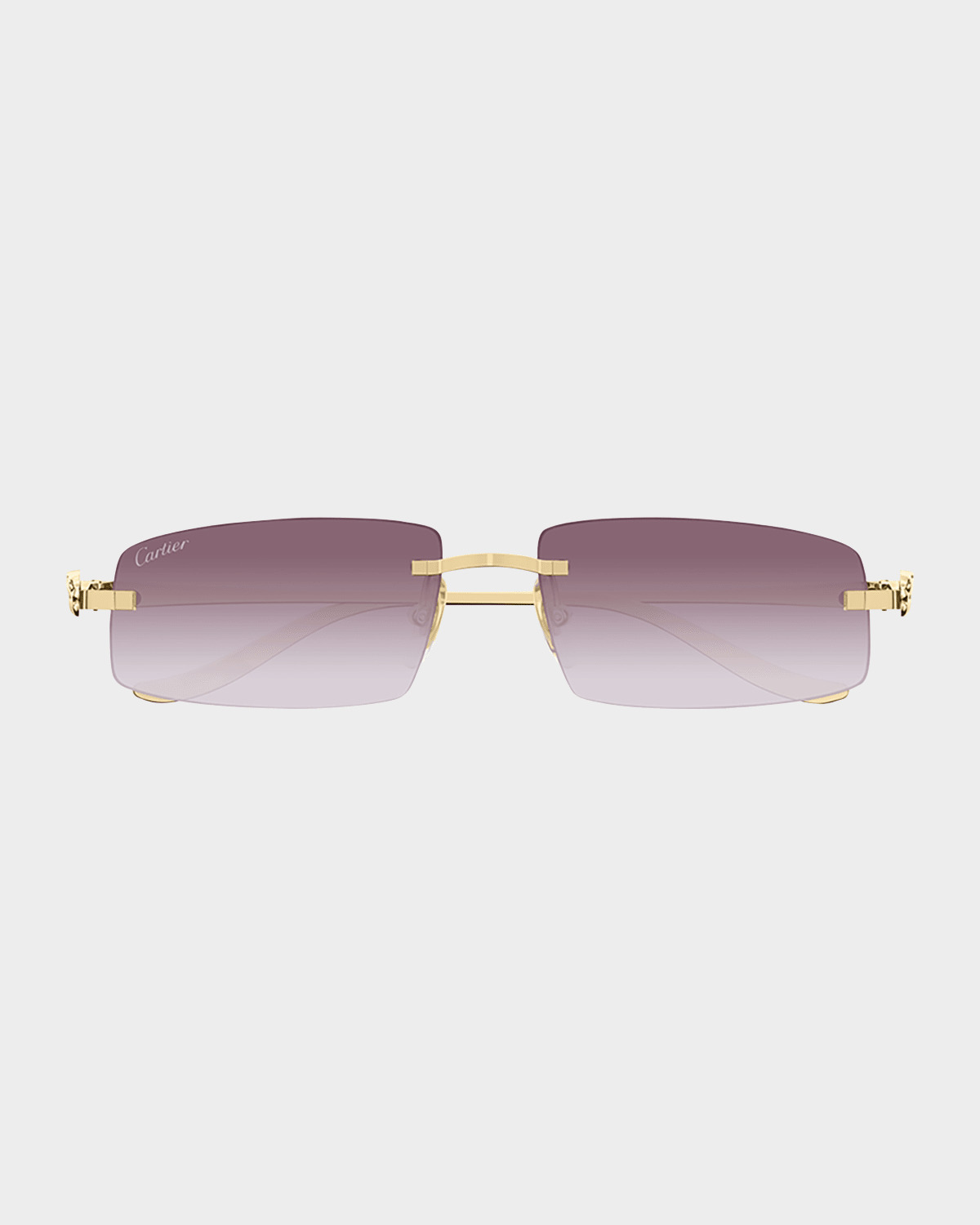 - Cartier rimless rectangle sunglasses in metal - Part of the Panthere collection - Lens/bridge/temple (in mm): 58-16-135 - Gradient lenses - Adjustable nose pads - Signature panther on temples - 100% UVA/UVB protection - Made in Italy - Proposition 65 warning for California residents