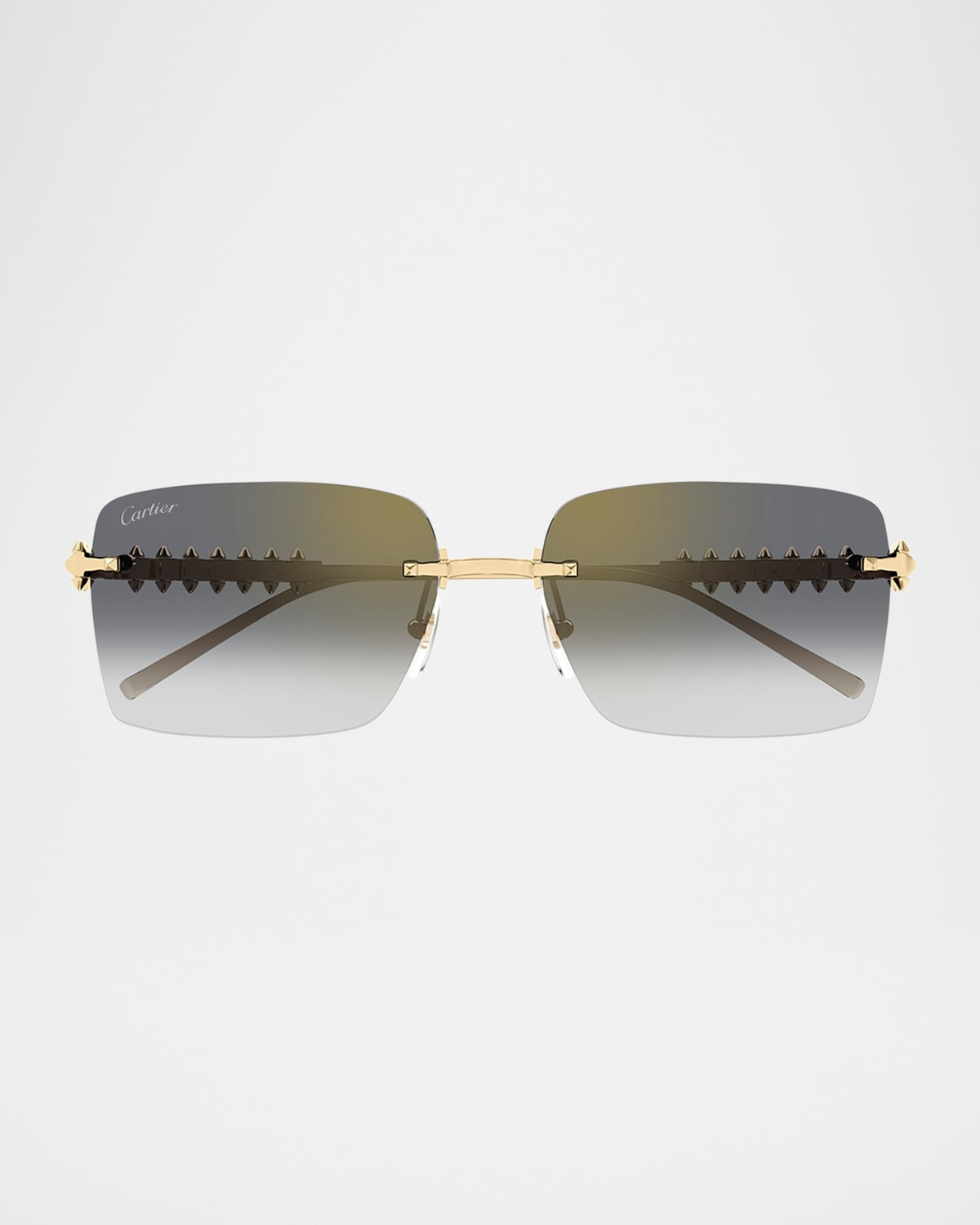 - Cartier "CT0545S" rectangle sunglasses in metal - Eye/bridge/temple (in mm): 58-17-140 - Gradient lenses; right logo script - Adjustable nose pads - Studding at temples - Thin, tapered arms - 100% UVA/UVB protection - Made in France - Proposition 65 warning for California residents