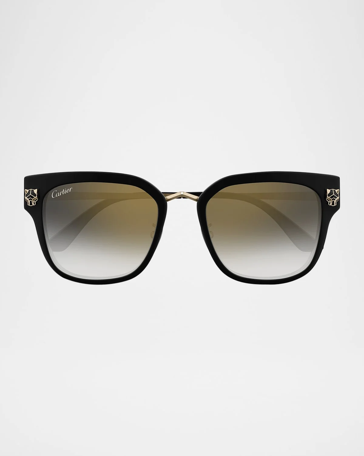 - Cartier round sunglasses in acetate - Eye/bridge/temple (in mm): 55-21-145 - Gradient lenses - Right lens logo script - Adjustable nose pads - Tapered arms - Acetate - 100% UVA/UVB protection - Made in Italy - Proposition 65 warning for California residents