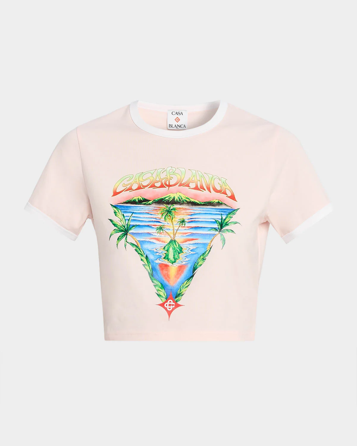 CASABLANCA Tshirt is crafted from cotton stretch accented with Innocence Triangle graphic printed front and contrast trim Crew neckline Short sleeves Slim fit Cropped length Pullover style Cotton/elastane Made in Portugal