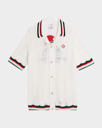 Men's Faux Crochet Stripe-Trim Short-Sleeve Shirt
