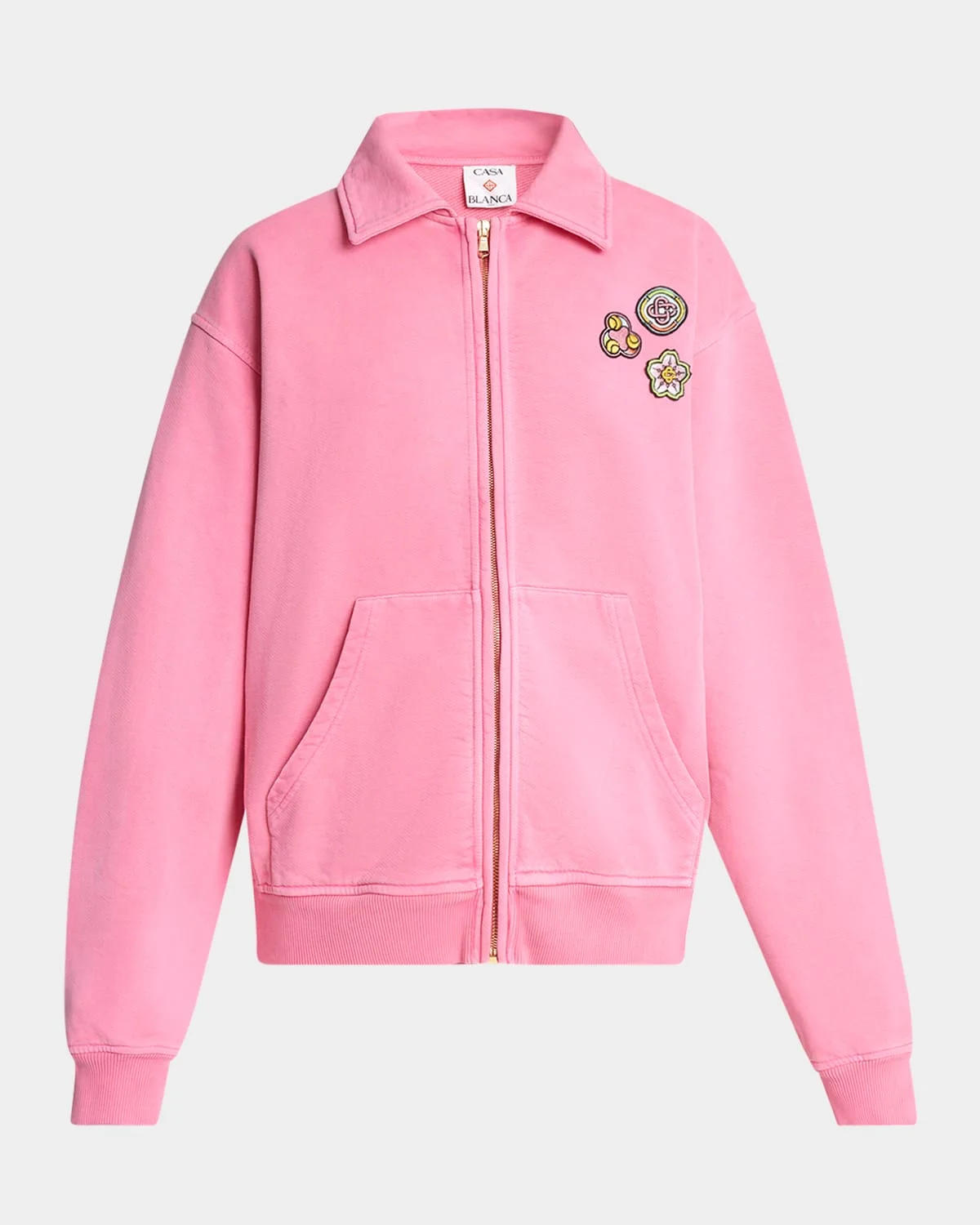 CASABLANCA sweatshirt is crafted of a washed organic cotton featuring sport icon patched on the chest Spread collar; zip front Long sleeves Front split kangaroo pocket Loose fit Hip length Banded cuffs and hem Organic cotton Made in Portugal