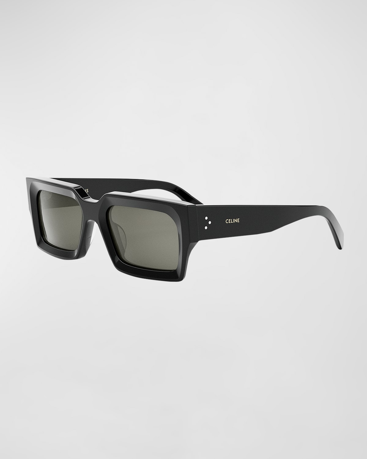- Celine "Bold 3 Dots" beveled rectangle sunglasses in acetate and nylon/polyamide - Lens/bridge/temple (in mm): 59-16-145 - Solid lenses - Saddle nose bridge - Logo on temples - Wide, tapered arms - Hand wash - 100% UVA/UVB protection - Made in Italy - Proposition 65 warning for California residents