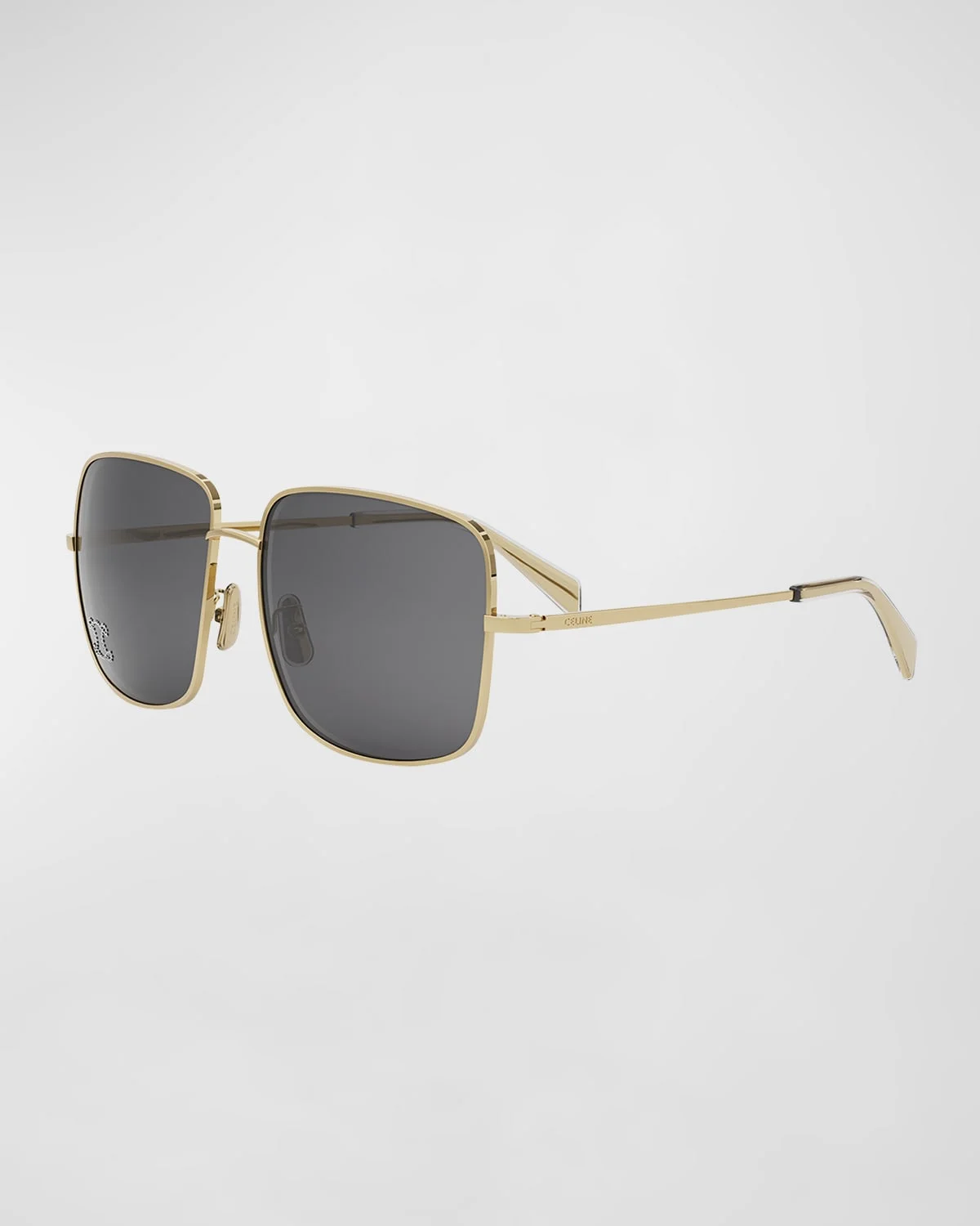 - Celine square sunglasses in metal, nylon/polyamide, and rhinestones - Lens/bridge/temple (in mm): 59-16-145 - Solid lenses; logo on corner - Adjustable nose pads - Logo on temples - Thin, tapered arms - Hand wash - 100% UVA/UVB protection - Made in Italy - Proposition 65 warning for California residents