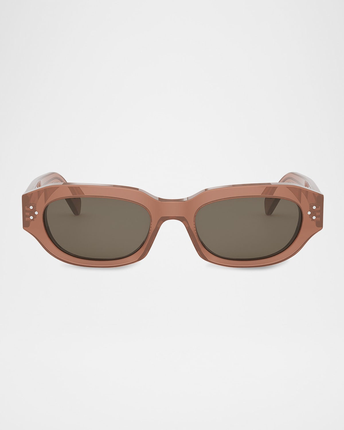 - Celine rectangle sunglasses in acetate - Lens/bridge/temple (in mm): - 33.7-20-145 - Solid-color lenses - Saddle nose bridge - Signature three dots on the sides and temples - Logo underlacquered on the temples - Exposed metal corewire - Acetate - 100% UVA/UVB protection - Made in Italy - Proposition 65 warning for California residents