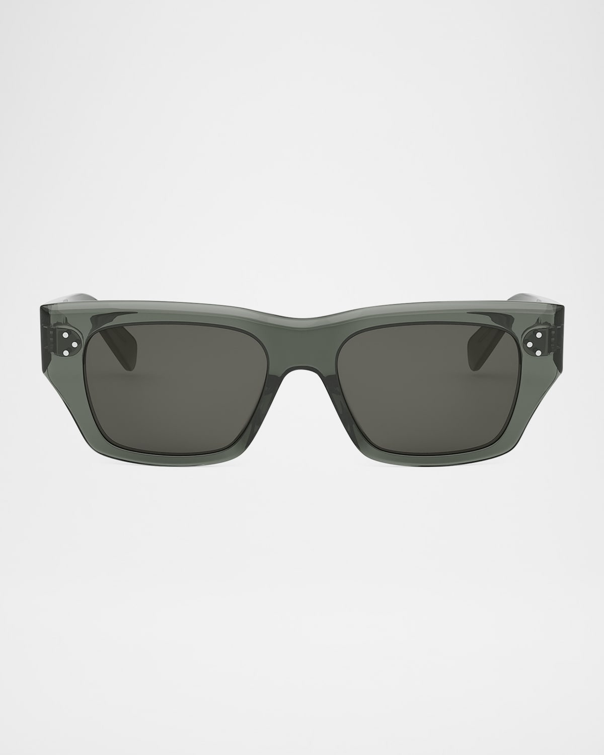 - Celine solid sunglasses with signature 3 Dots and underlacquered logo at temples - Eye/bridge/temple (in mm): 53-18-150 - Eyewear style: Shield - Saddle nose bridge - Notched arms - Acetate/nylon/polyamide - 100% UVA/UVB protection - Made in Italy - Proposition 65 warning for California residents - This product contains perfluoroalkyl and polyfluoroalkyl substances (PFAS). For more information, please visit the manufacturer’s website.